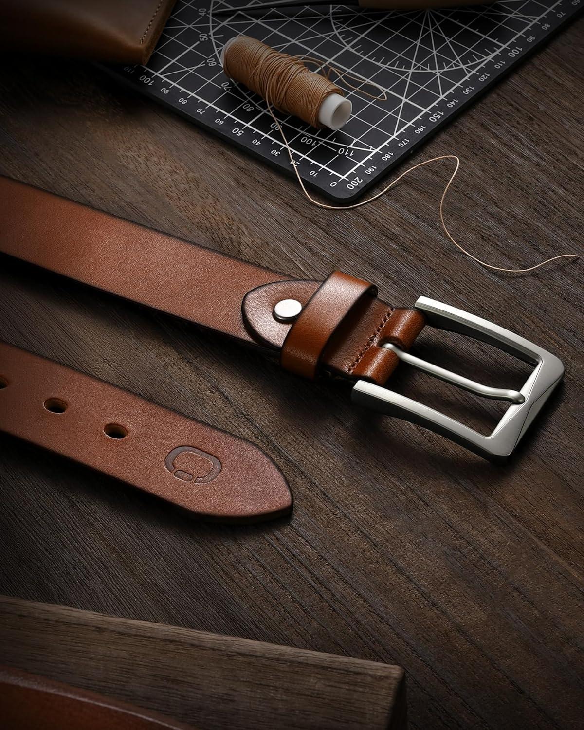 CHAOREN 1.5″ Mens Belts Leather – Italian Full Grain Leather Belts – Ideal for Casul Jeans & Work Wear(Tan)