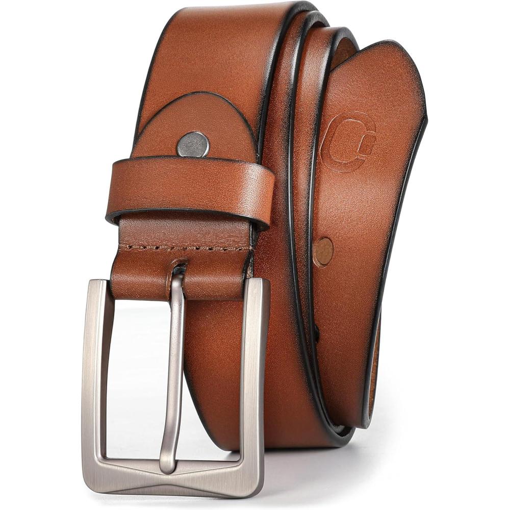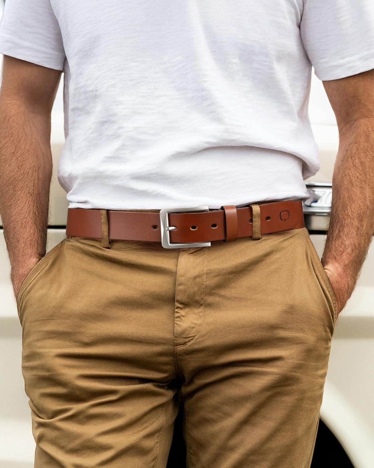 CHAOREN 1.5″ Mens Belts Leather – Italian Full Grain Leather Belts – Ideal for Casul Jeans & Work Wear(Cognac)