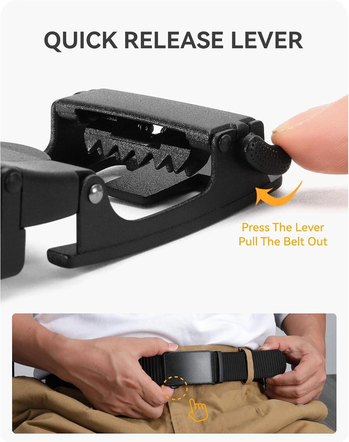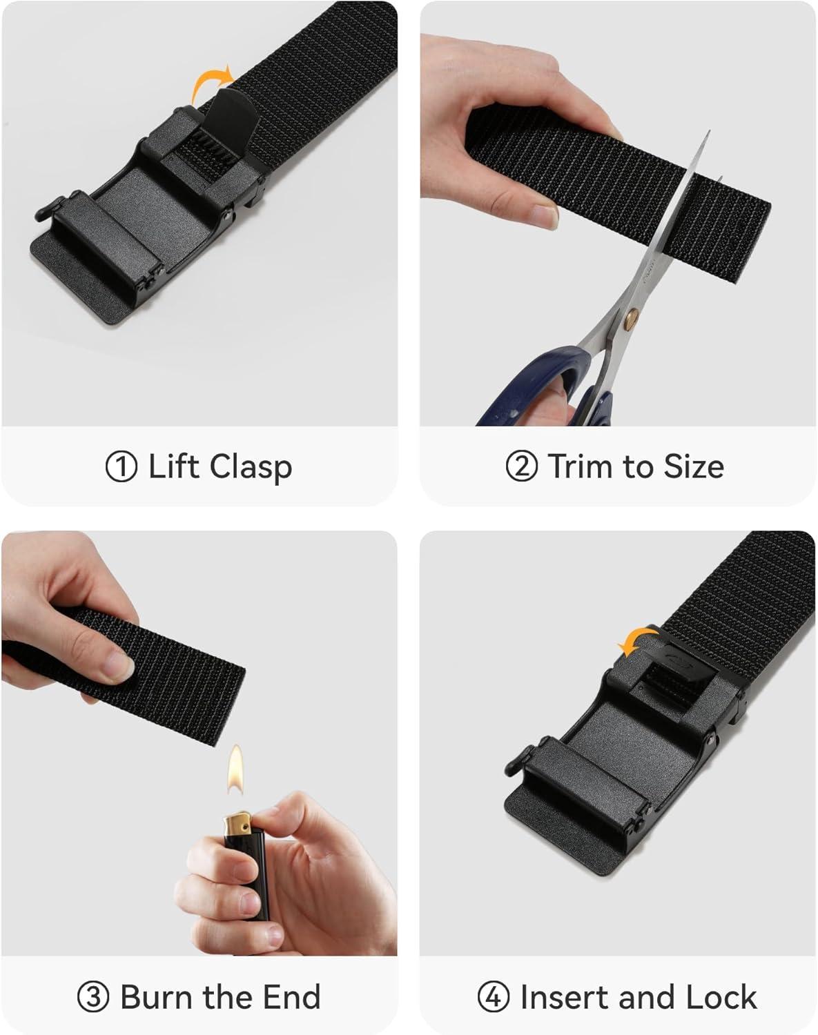 CHAOREN 1.5″ Nylon Ratchet Belts for Men – Adjustable Casual Work Belt with Slide Buckle – Trim to Fit(Black)