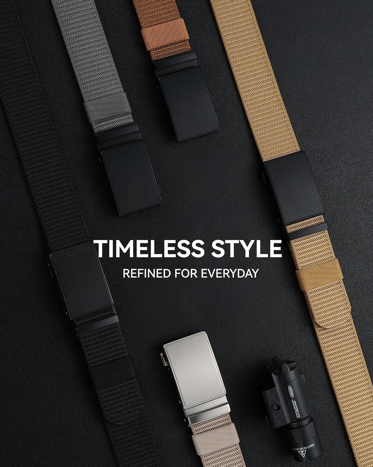 CHAOREN 1.5″ Nylon Ratchet Belts for Men – Adjustable Casual Work Belt with Slide Buckle – Trim to Fit(Classic Coyote)