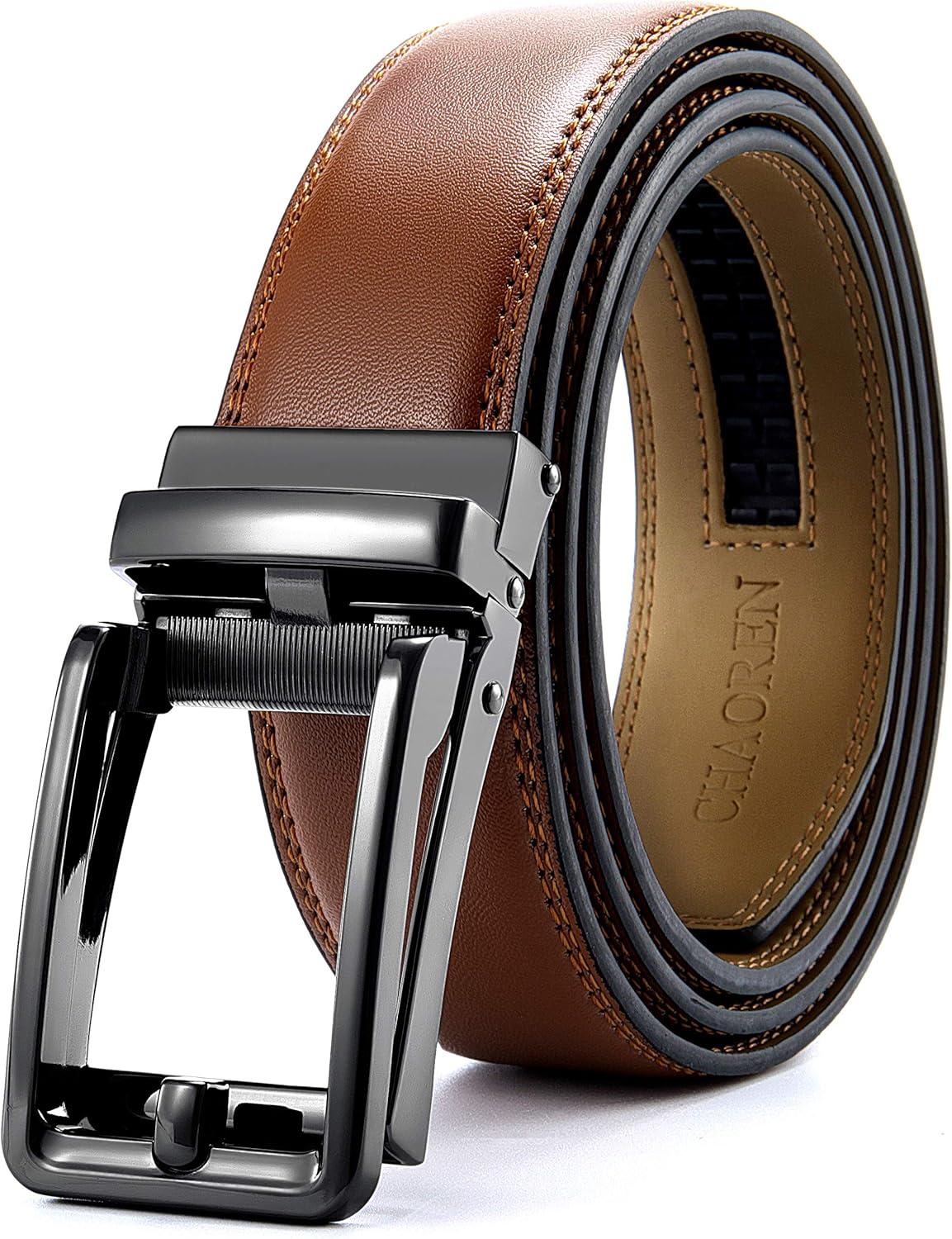 imageCHAOREN Ratchet Belt Strap Only 1 14quot Replacement Leather Belt for 32mm BuckleLitchi Black
