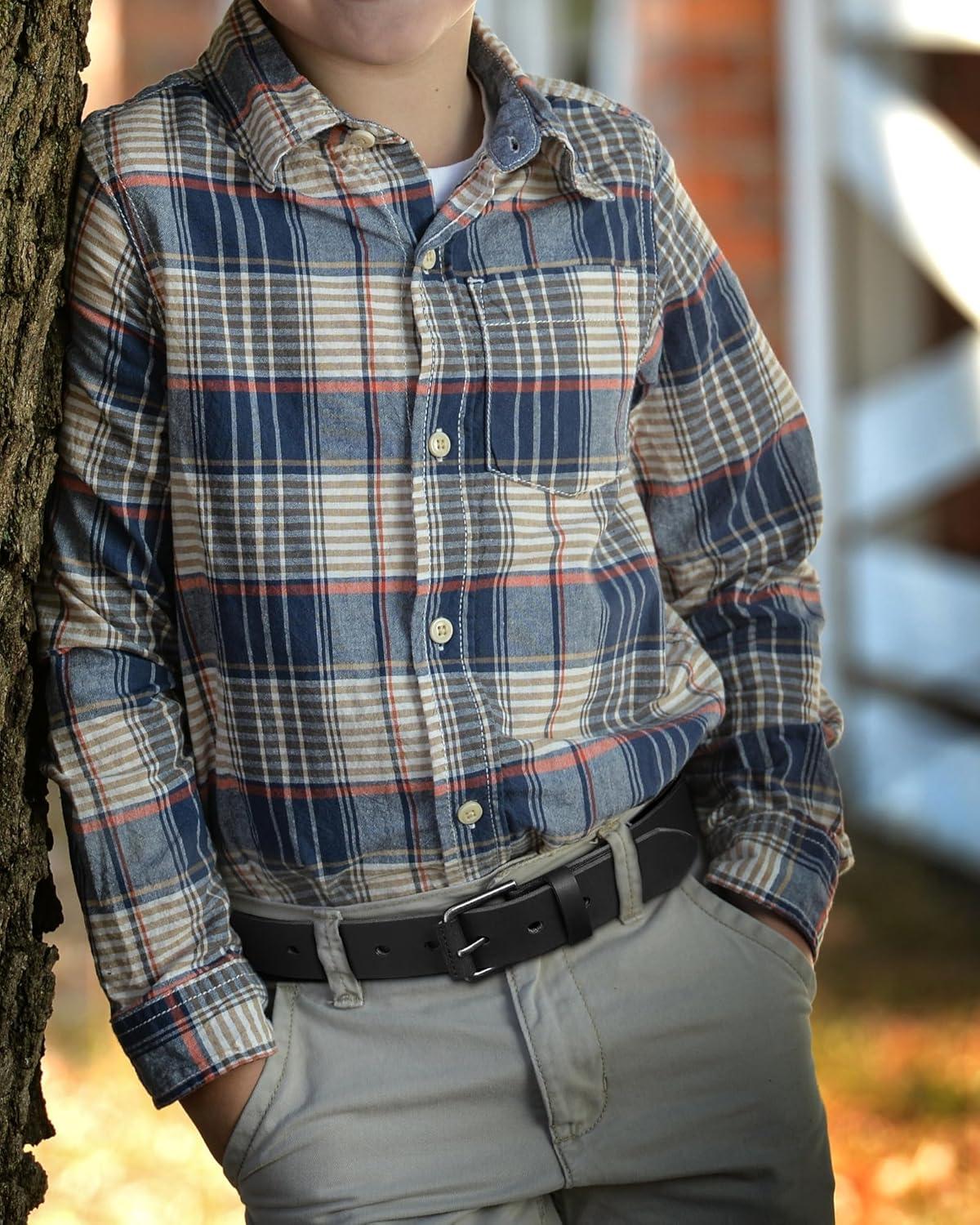 imageCHAOREN Boys Belt  1 18quot Kids Leather Belt Handmade Full Grain Leather  Ideal for Dress and Casual WearBlack