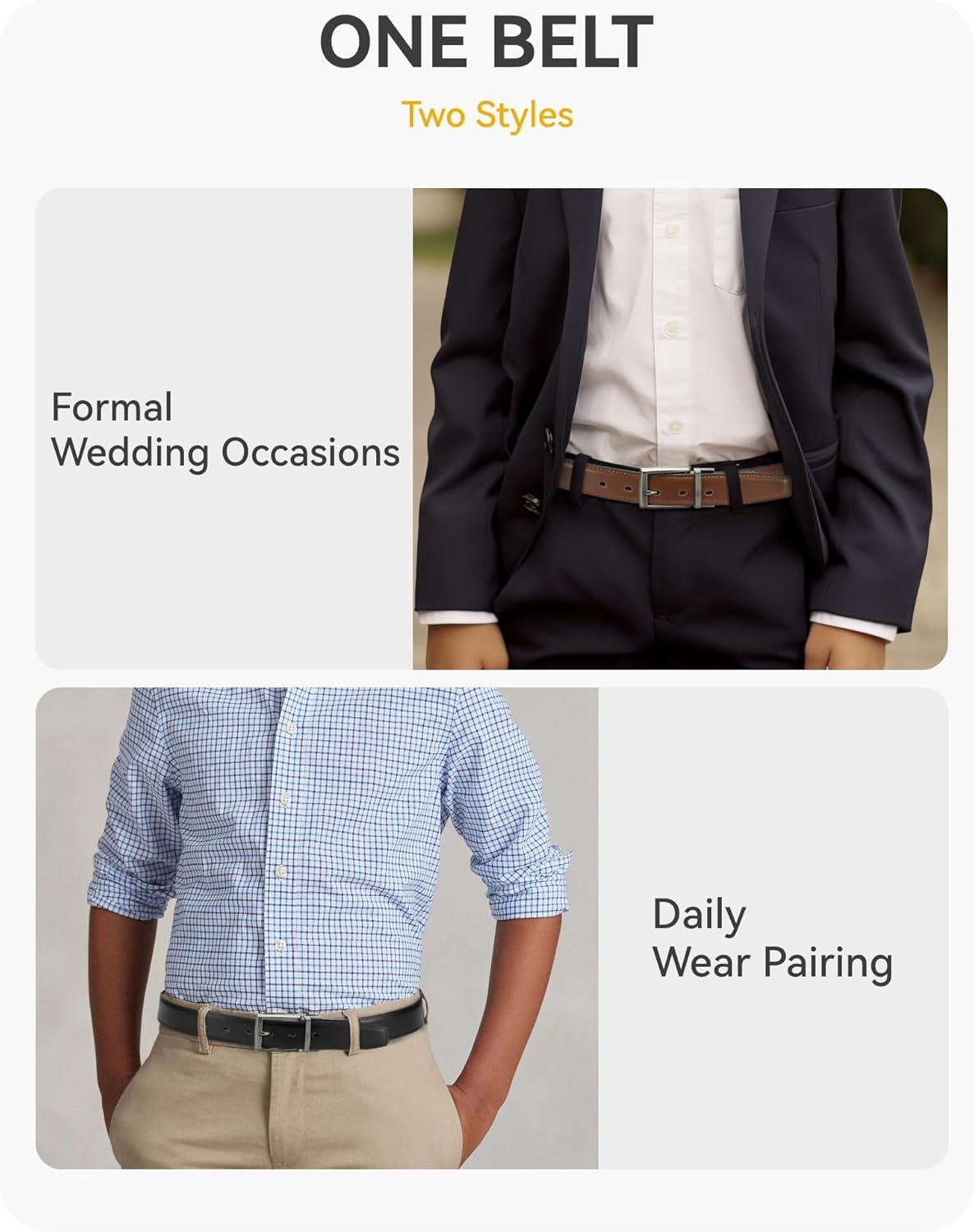 CHAOREN Boys Belt, Most Size Kids 1 1/4″ Dress Reversible Belt for Youth – One Leather Belt Two Style(Black/Dark Brown)