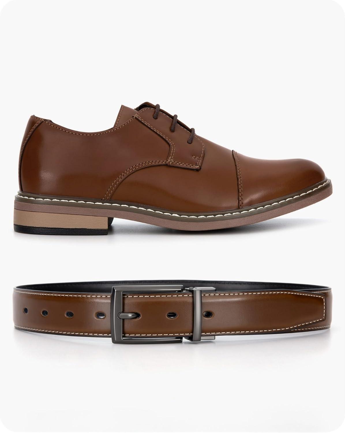 CHAOREN Boys Belt, Most Size Kids 1 1/4″ Dress Reversible Belt for Youth – One Leather Belt Two Style(Black/Cognac)