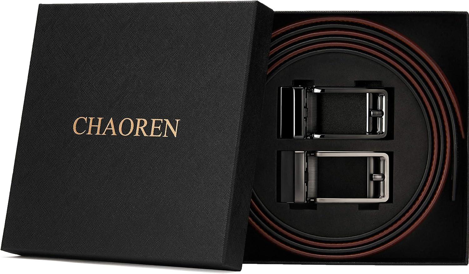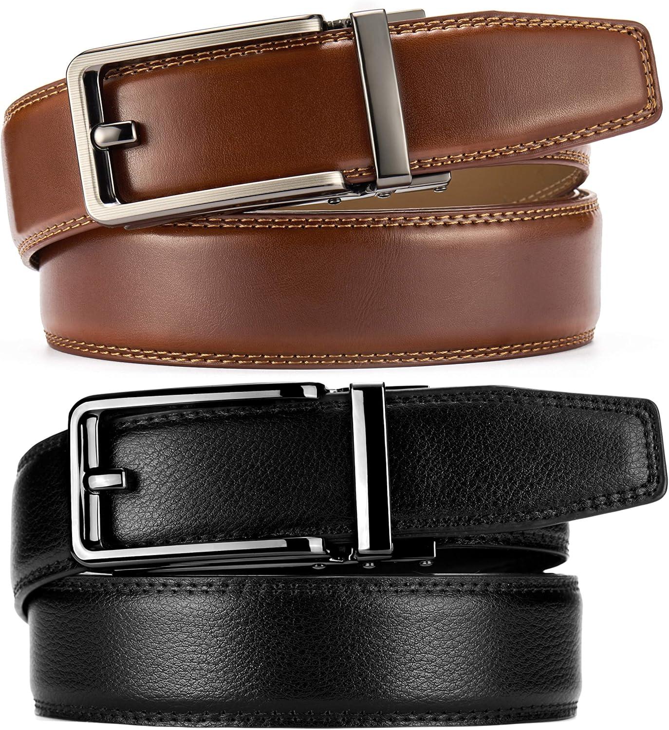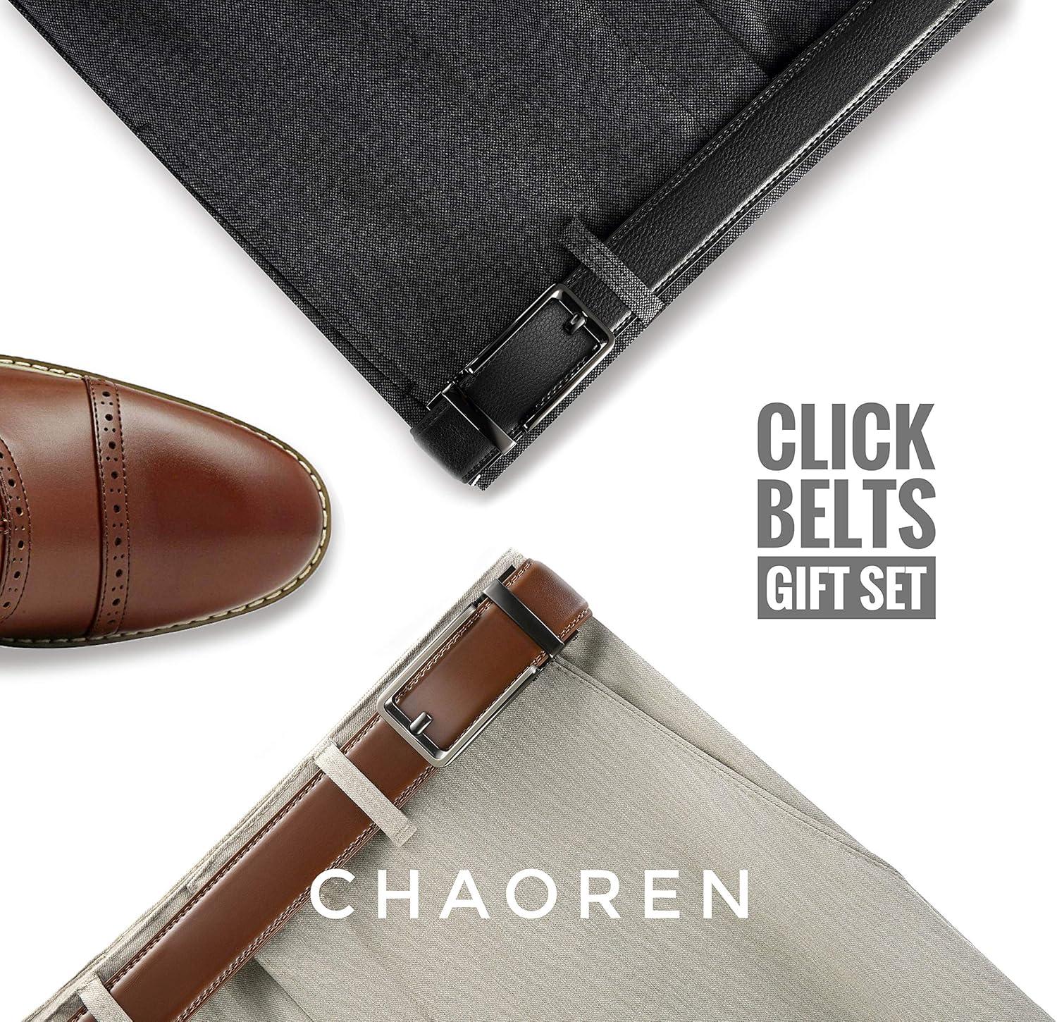 CHAOREN Click Belts for Men 2 Pack – Mens Ratchet Leather Belt 1 3/8″ for Dress and Casual – Micro Adjustable Belt Fit(Black/Tan)