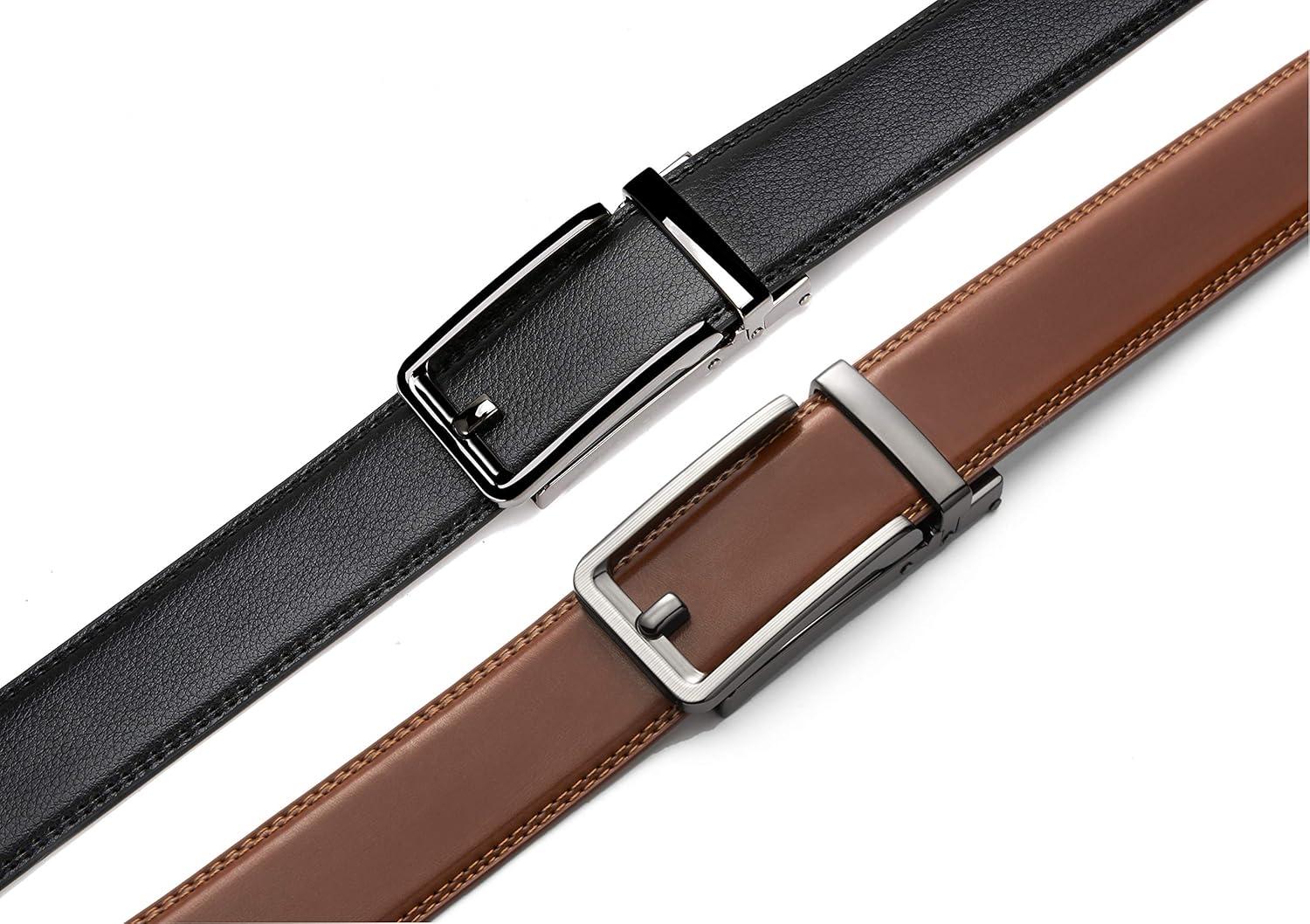 CHAOREN Click Belts for Men 2 Pack – Mens Ratchet Leather Belt 1 3/8″ for Dress and Casual – Micro Adjustable Belt Fit(Black/Cognac)