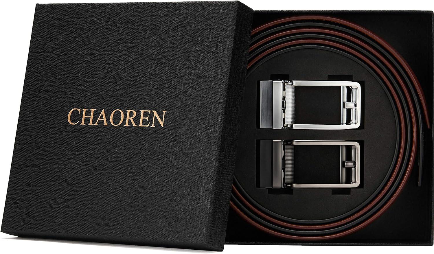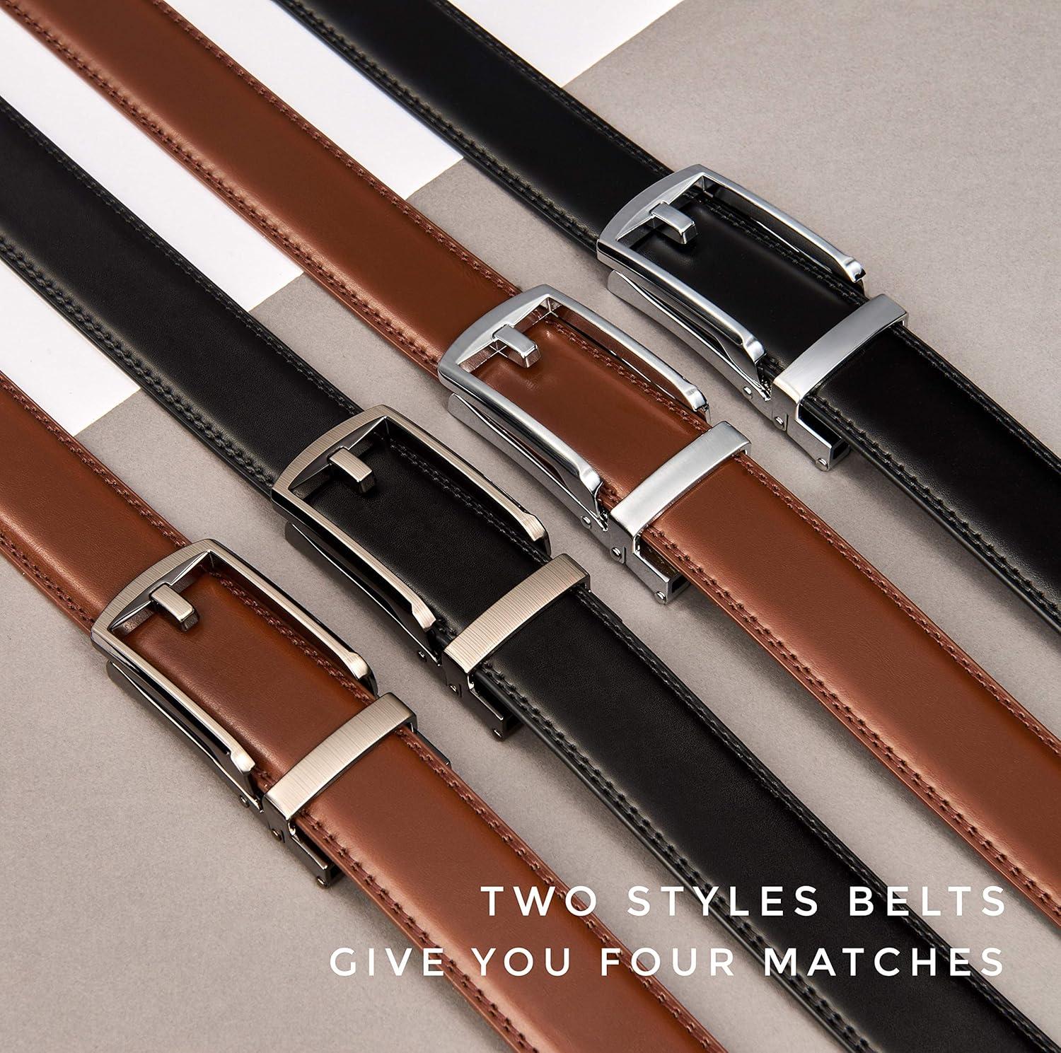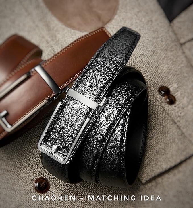 CHAOREN Click Belts for Men 2 Pack – Mens Ratchet Leather Belt 1 3/8″ for Dress and Casual – Micro Adjustable Belt Fit(Black/Tan)