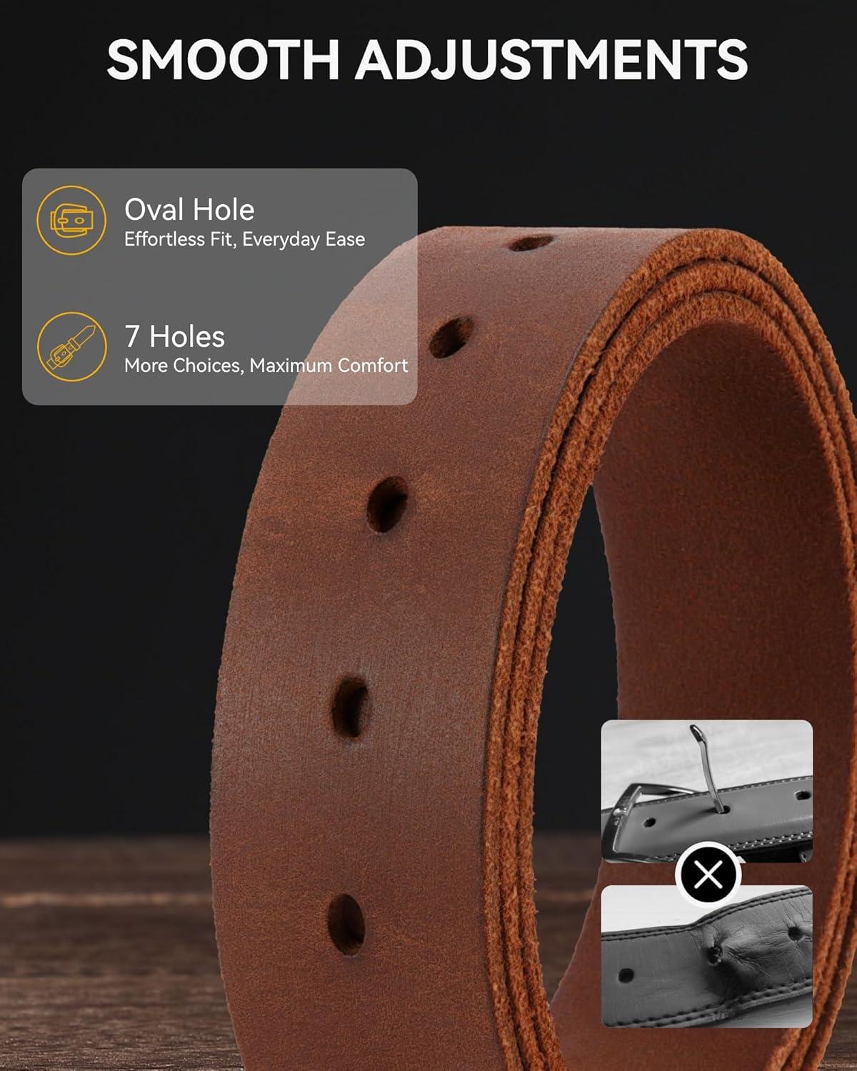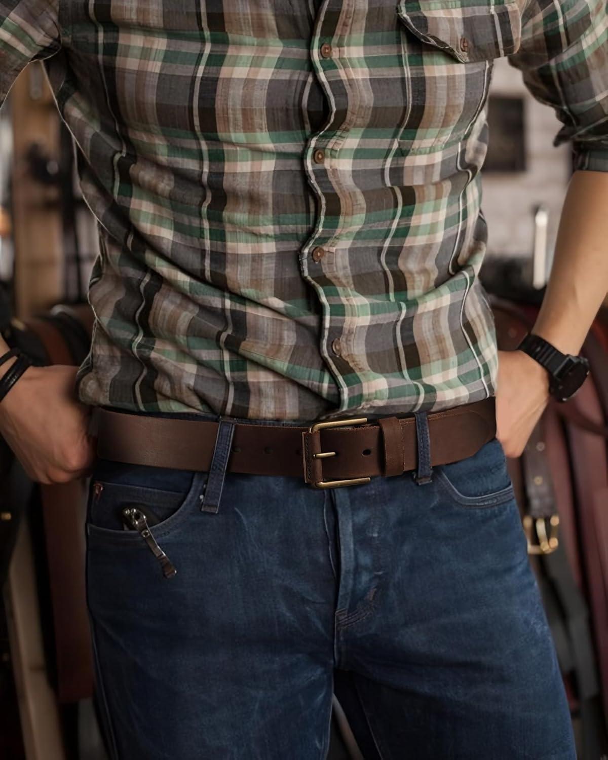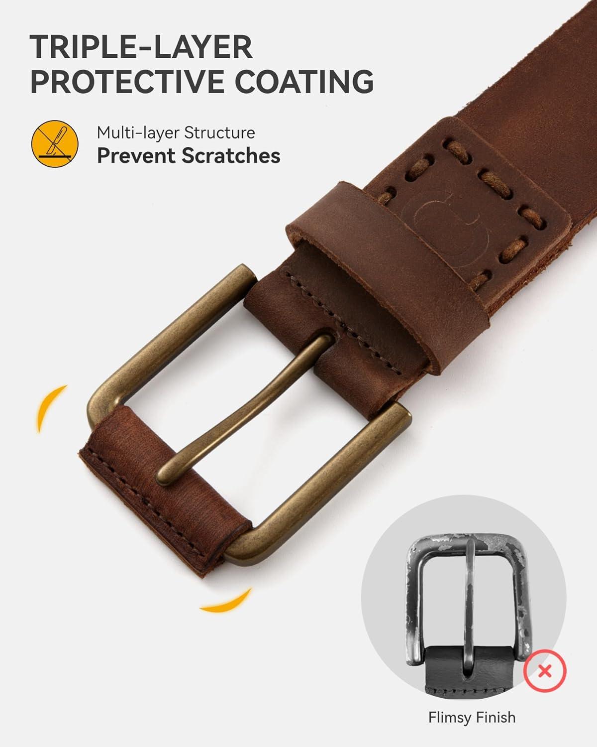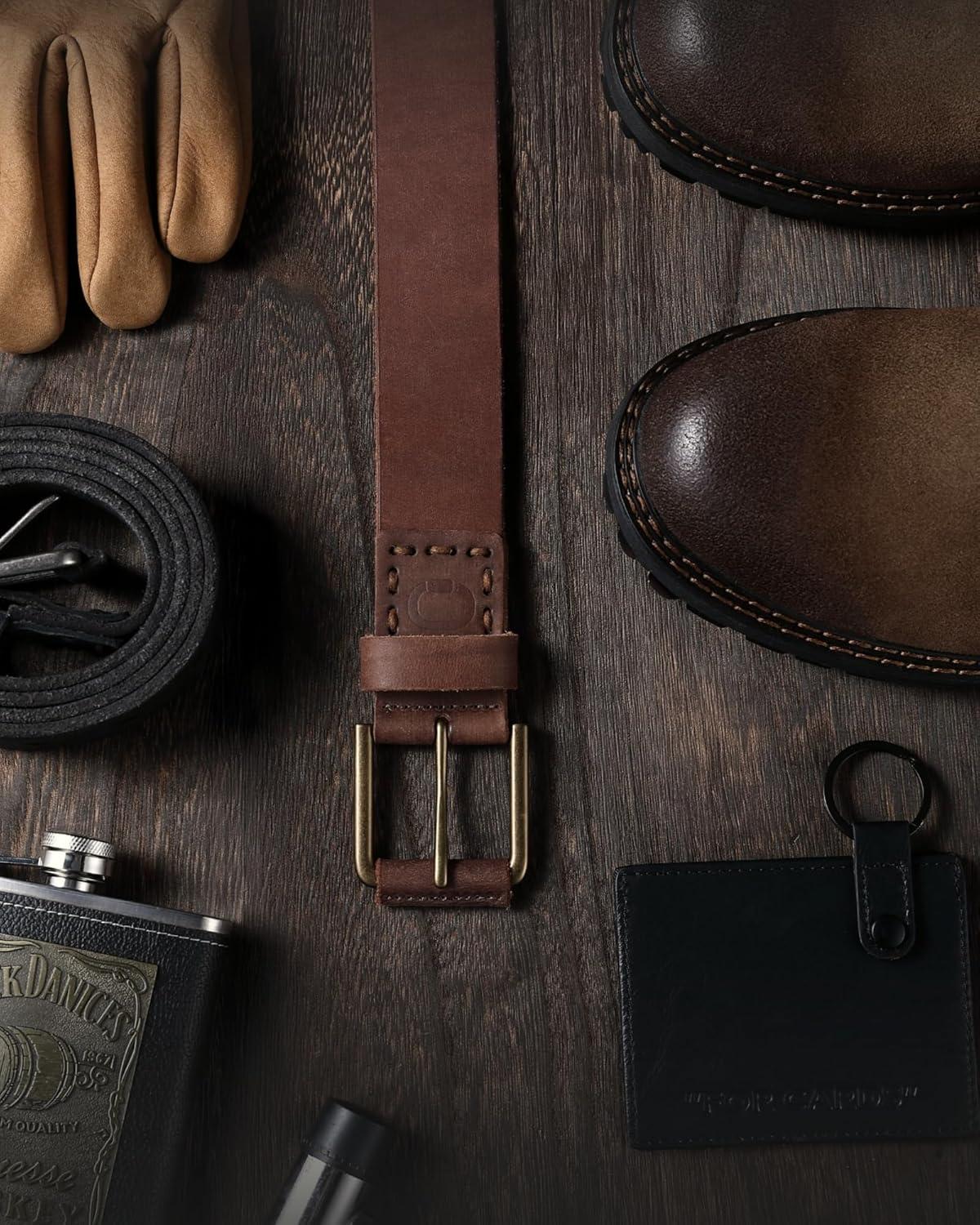 CHAOREN Full Grain Leather Belt for Men, Work Belts for Men Heavy Duty, Daily Wear for Jeans Pants(Casual Brown)