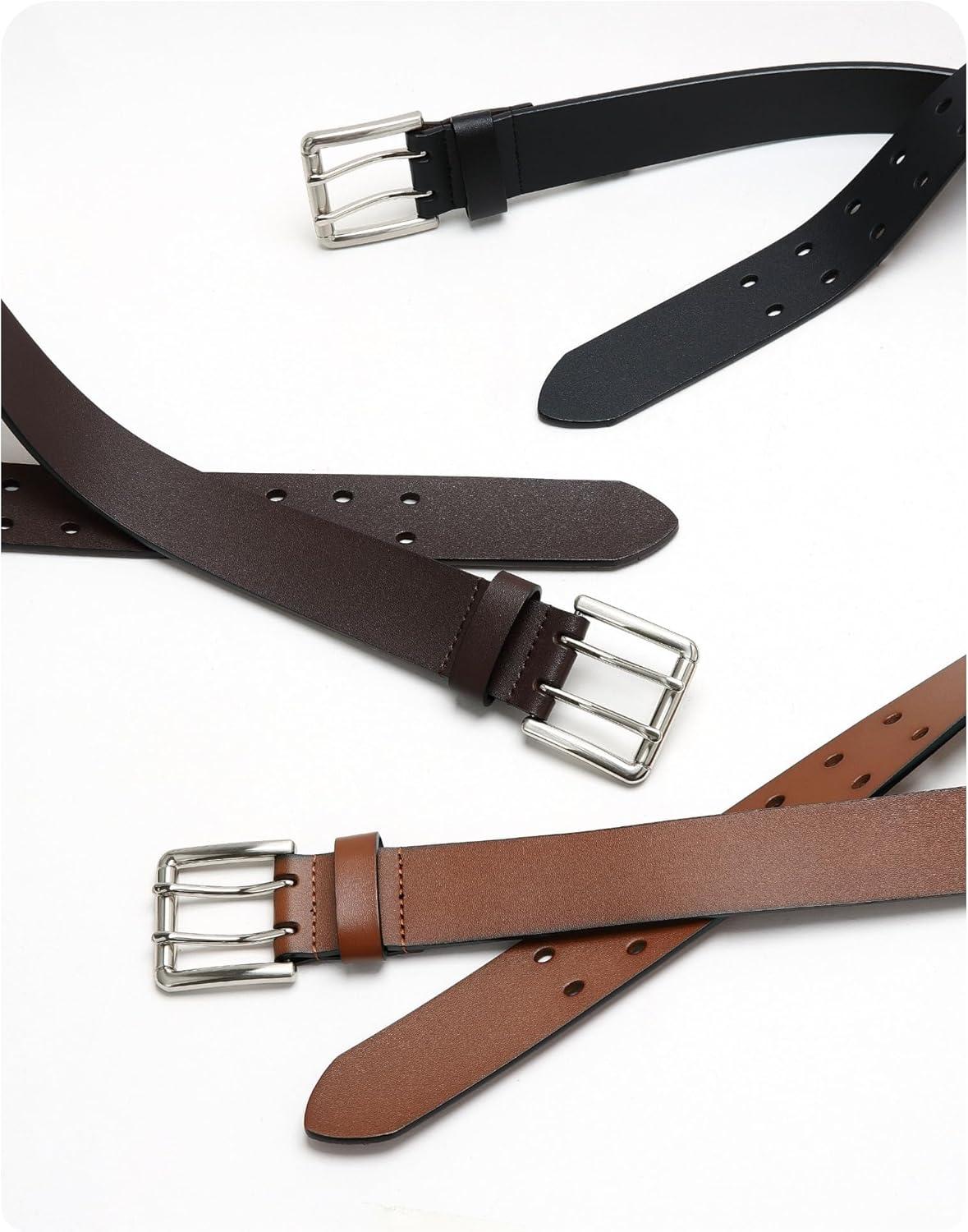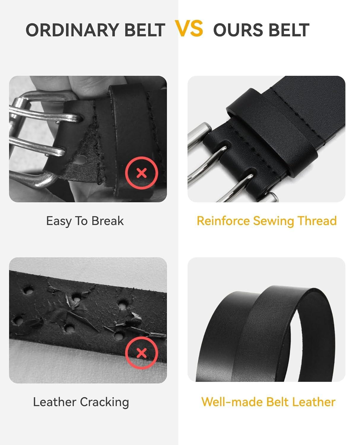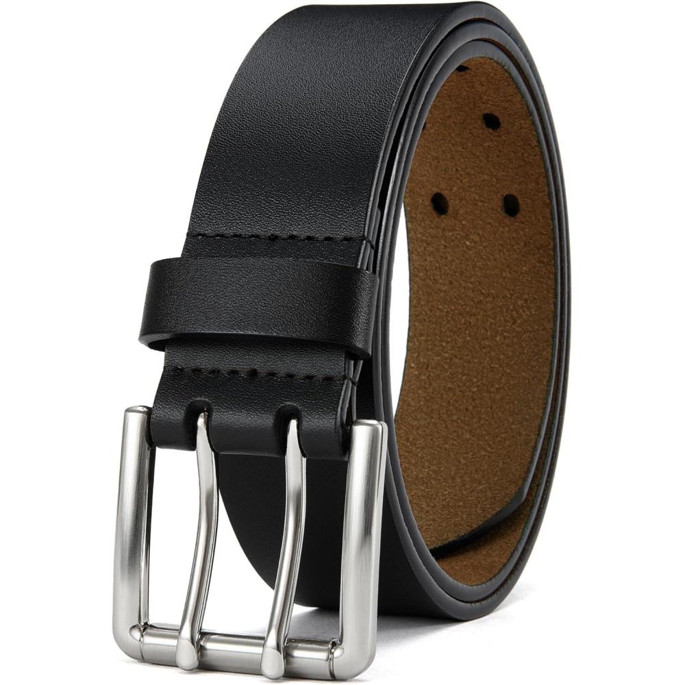 CHAOREN Full Grain Leather Belts for Men - Mens Belt for Jeans - Timeless Elegance for Casual Dress(Double Black Silver)