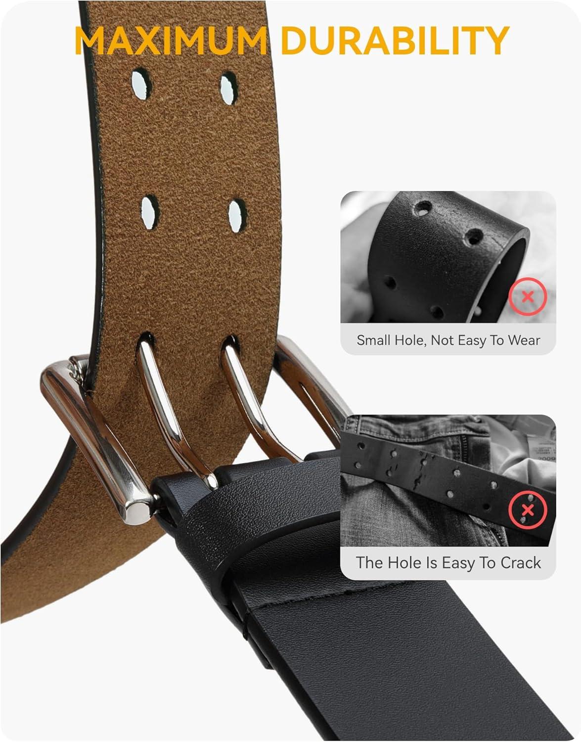 CHAOREN Full Grain Leather Belts for Men – Mens Belt for Jeans – Timeless Elegance for Casual Dress(Double Black Silver)