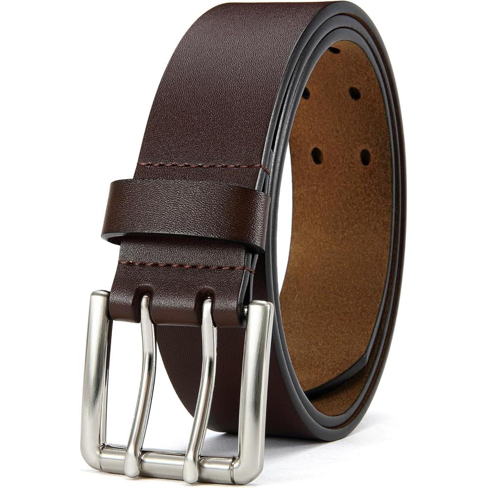 CHAOREN Full Grain Leather Belts for Men - Mens Belt for Jeans - Timeless Elegance for Casual Dress(Double Brown)