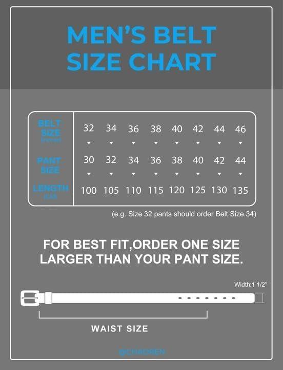Introducing the CHAOREN Work Belts for Men, designed for the modern man seeking durability and style in their everyday wear. Crafted with precision, these 1.5″ double prong black leather belts are the epitome of rugged sophistication. Embrace the heavy-duty buckles that not only secure your attire but also elevate your look effortlessly. Whether it's casual jeans, smart pants, or even shorts, these versatile belts complement a range of outfits, making them a must-have accessory for your wardrobe. Constructed to withstand the rigors of daily wear, these work belts are not just about style—they are about resilience. The premium black leather exudes timeless elegance, while the double prong design adds a touch of rugged charm to your ensemble. Upgrade your attire with the CHAOREN Work Belts for Men and experience a blend of functionality and fashion that is perfect for every occasion. Ideal for the modern gentleman who values quality and style, these belts are the perfect accessory for work, leisure, and everything in between. Choose durability. Choose sophistication. Choose CHAOREN.