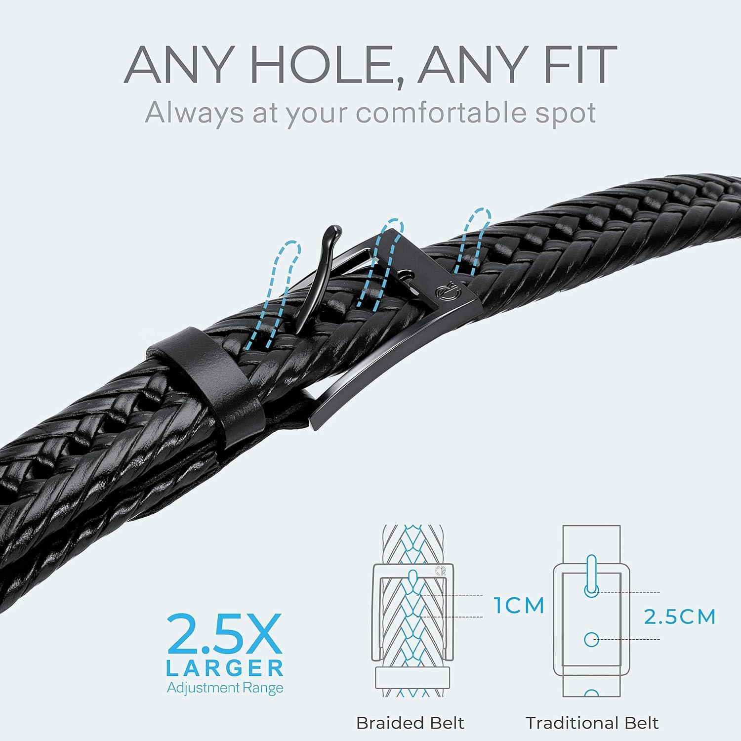 CHAOREN Leather Braided Belts for Men – 1 1/8″ Mens Casual Woven Leather Belt for Dress Pants(Gun)