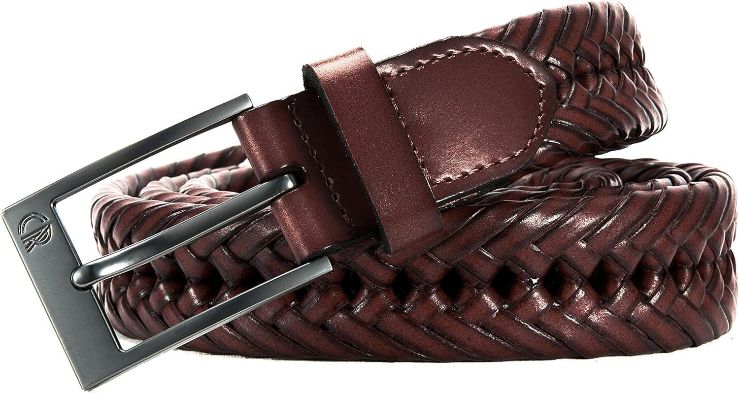 CHAOREN Leather Braided Belts for Men – 1 1/8″ Mens Casual Woven Leather Belt for Dress Pants(Brown)