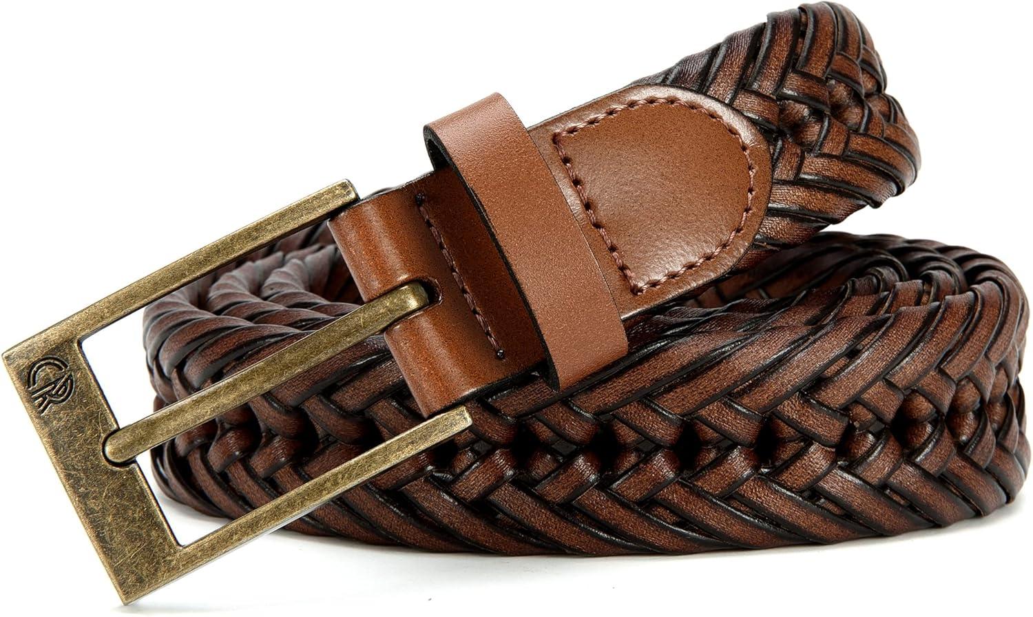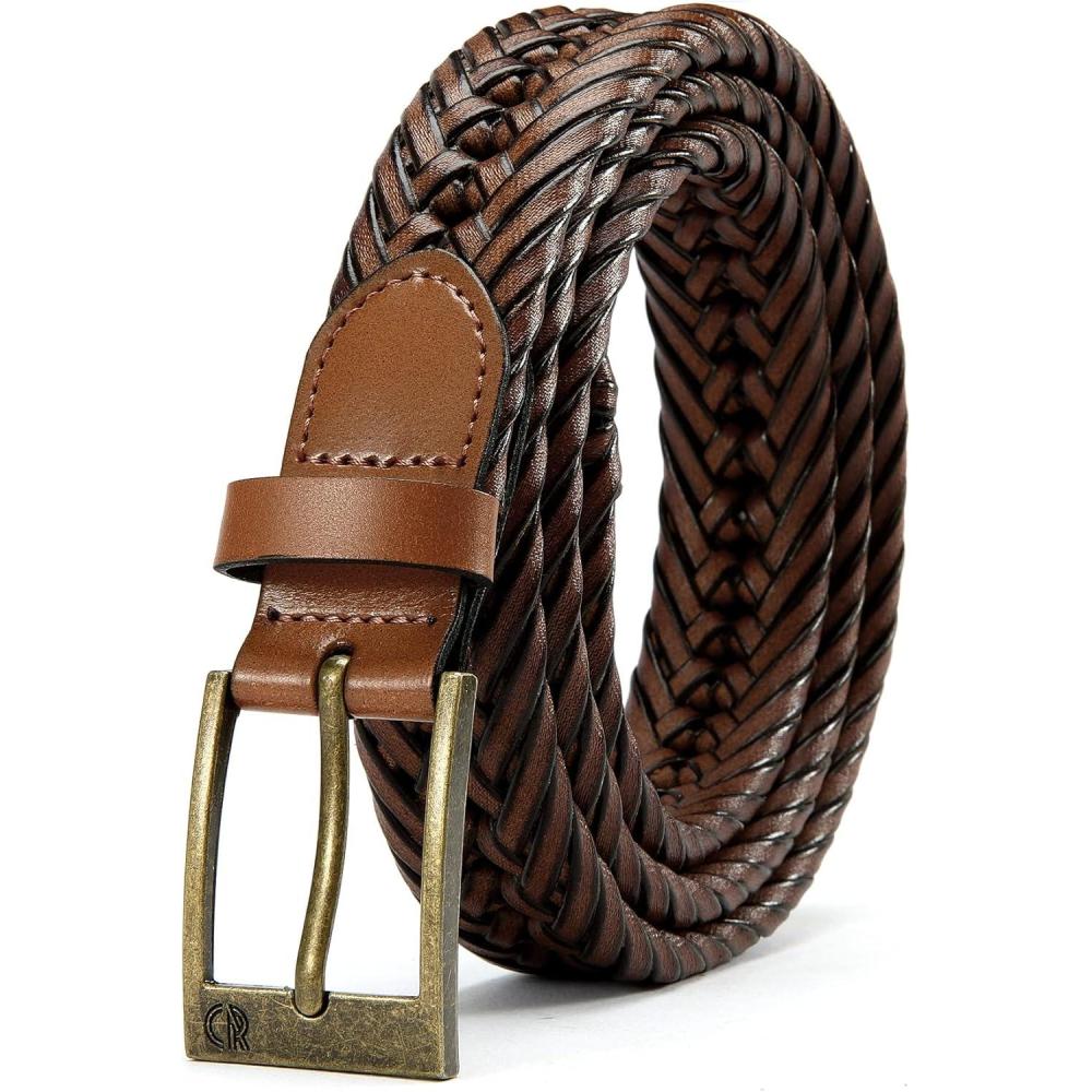 CHAOREN Leather Braided Belts for Men – 1 1/8″ Mens Casual Woven Leather Belt for Dress Pants(Brown)