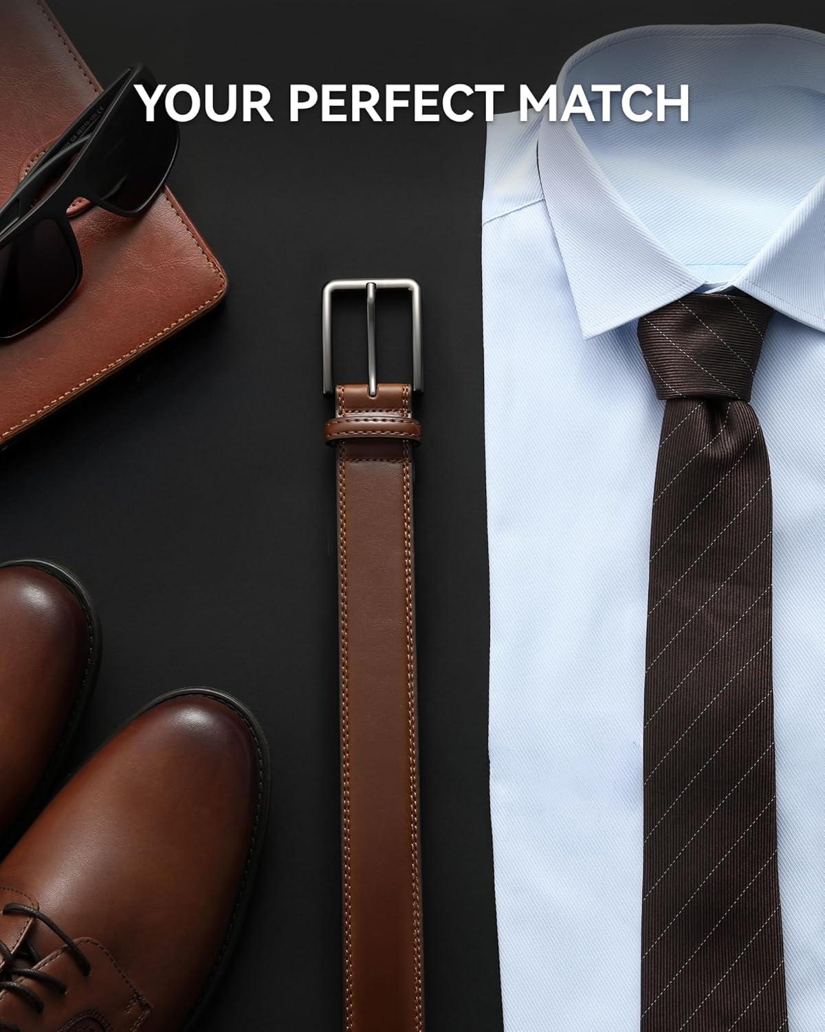 CHAOREN Leather Dress Belt Men 2 Pack - 1 3/8" Mens Belts for Work Business Casual Jeans(Black/Cognac)