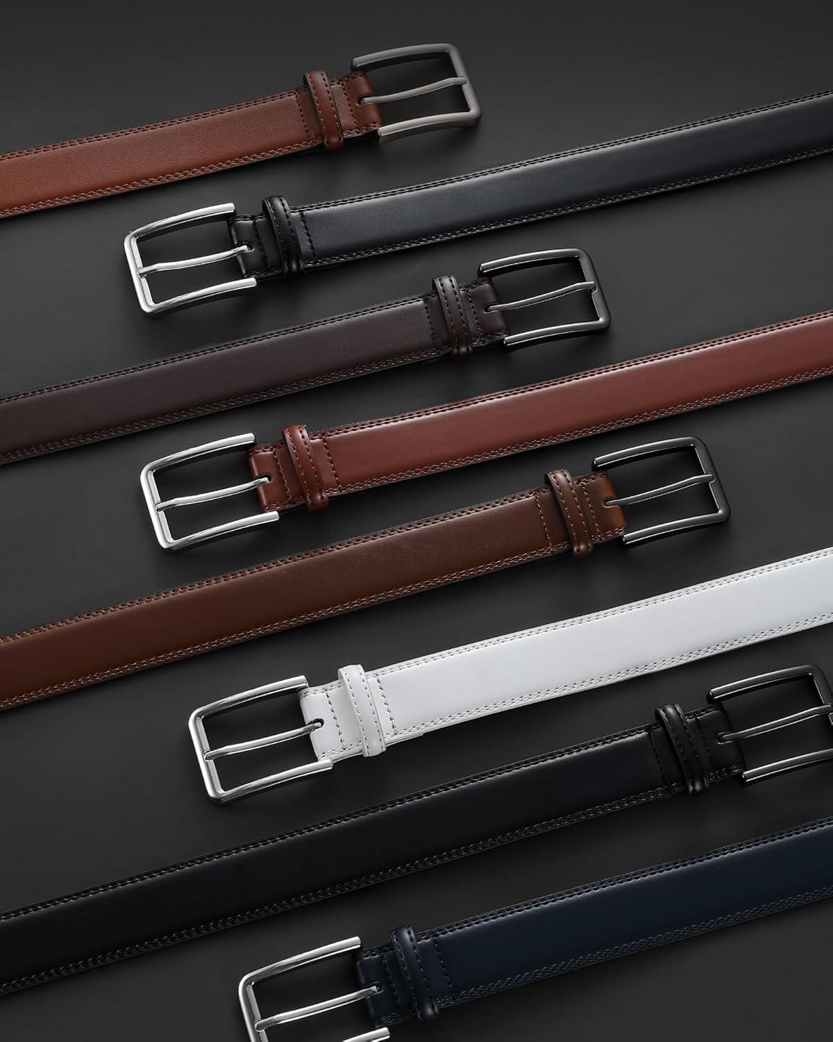 CHAOREN Leather Dress Belt Men 2 Pack – 1 3/8″ Mens Belts for Work Business Casual Jeans(Brown/Black 32mm)