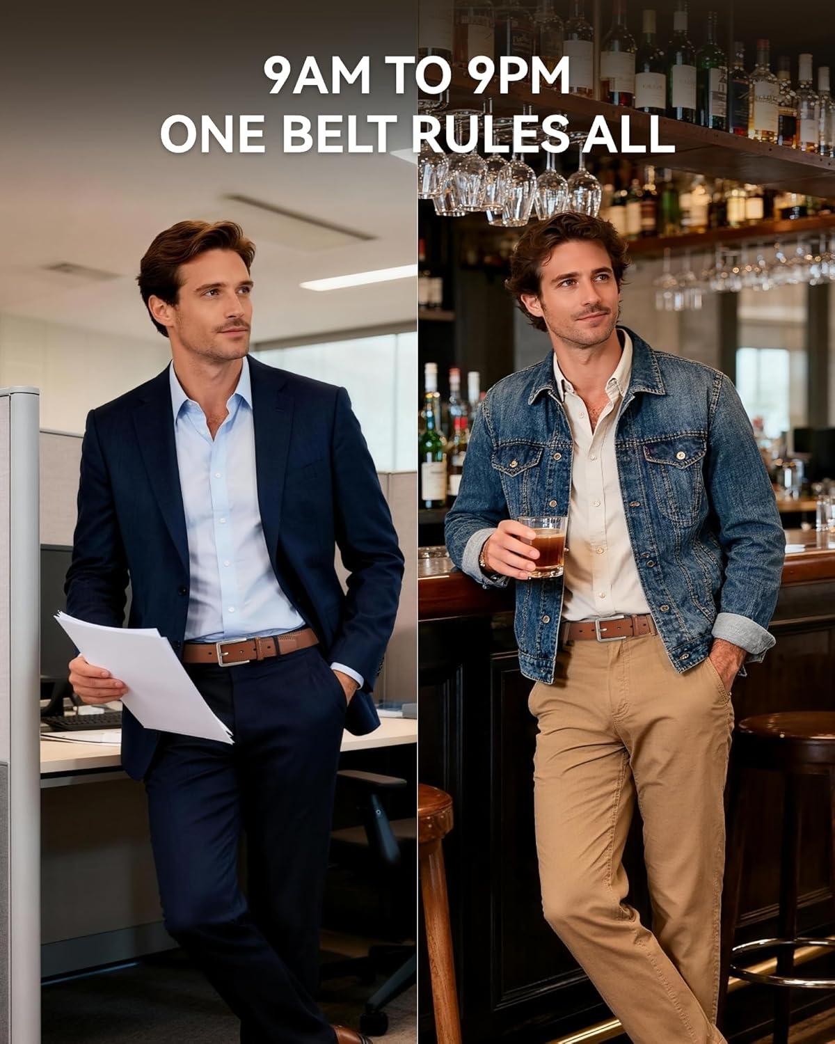 CHAOREN Leather Dress Belt Men 2 Pack - 1 3/8" Mens Belts for Work Business Casual Jeans(Classic Black/Brown)