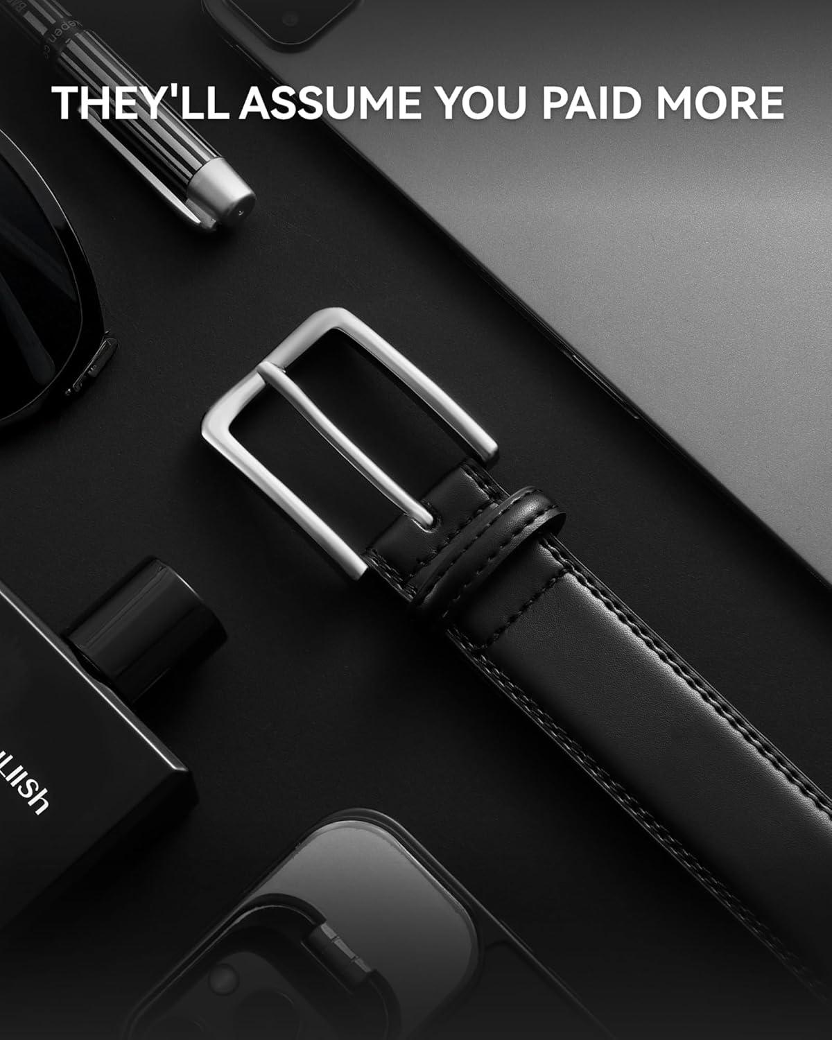 CHAOREN Leather Dress Belt Men 2 Pack – 1 3/8″ Mens Belts for Work Business Casual Jeans(Classic Black/Brown)