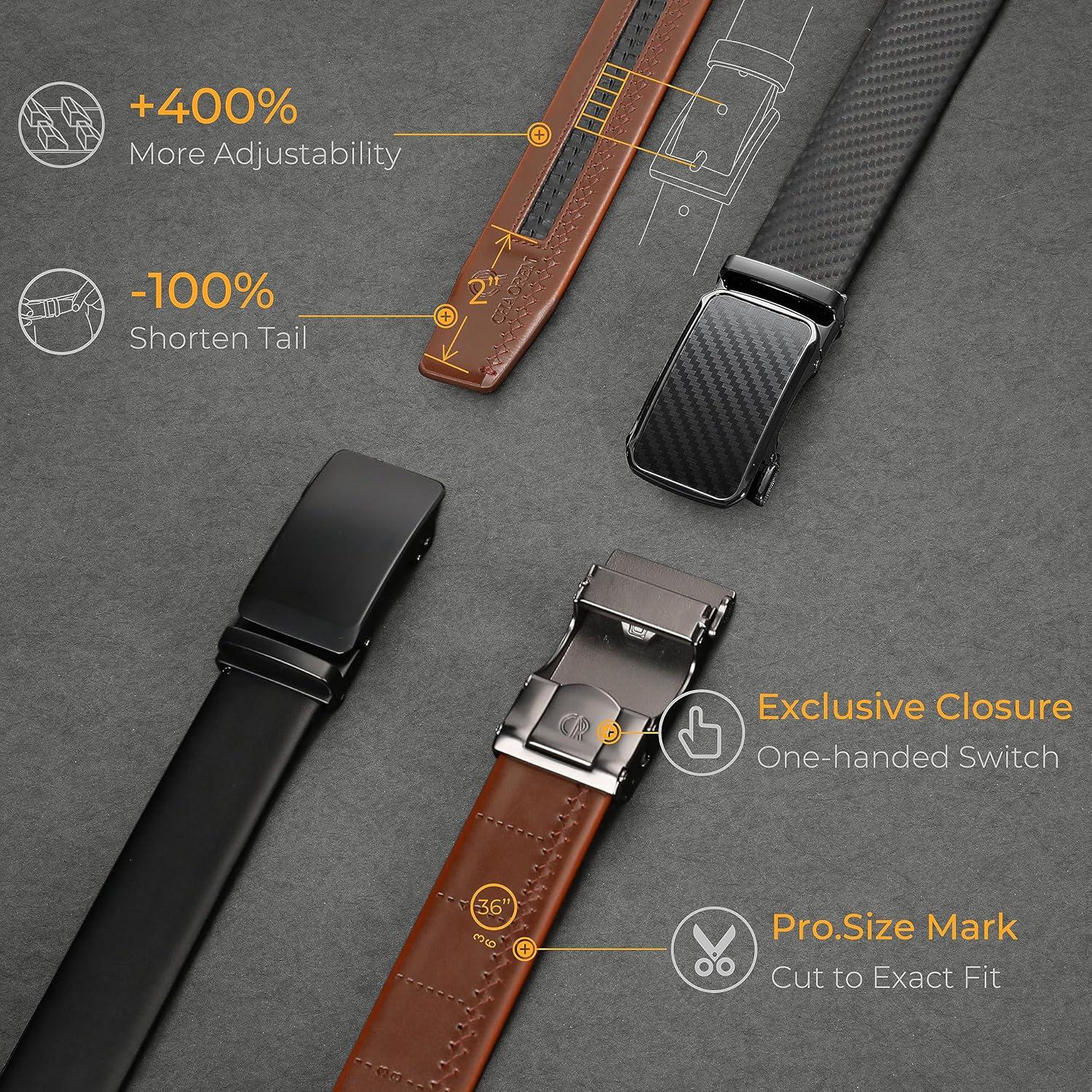 CHAOREN Leather Ratchet Belt for men 1 3/8″ for Dress Pants – Micro Adjustable Belt Fit Everywhere(Black – Carbon Fiber Metal)