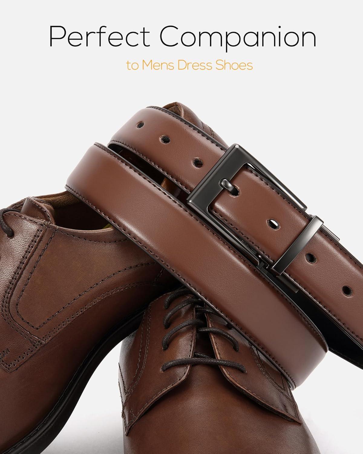 CHAOREN Mens Belt 1 Piece – Leather Reversible Belt Men for Dress Pants - Single Belt, 2 Colors(Black/Dark Brown)