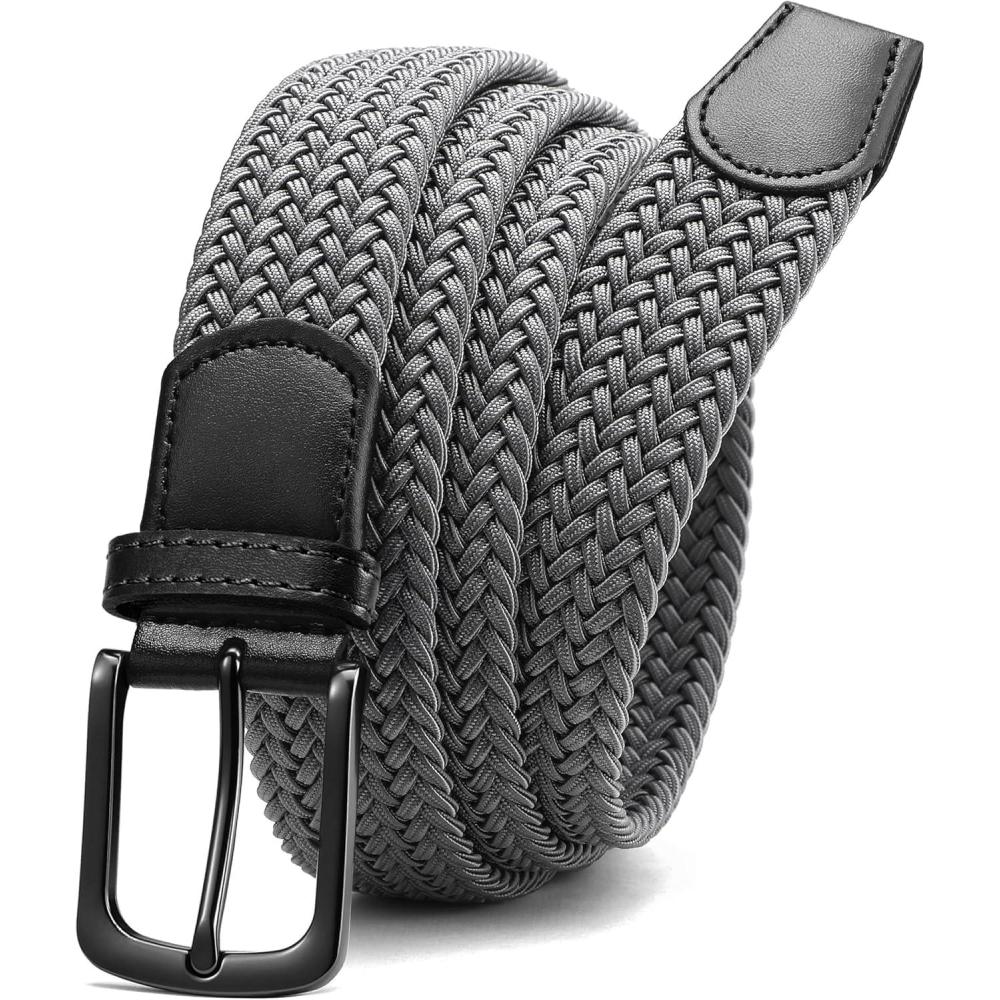 CHAOREN Mens Belt – Braided Stretch Golf Belt for Men 1 3/8″- Gift for Golf Pants Casual Shorts Jeans(Gun / Grey)