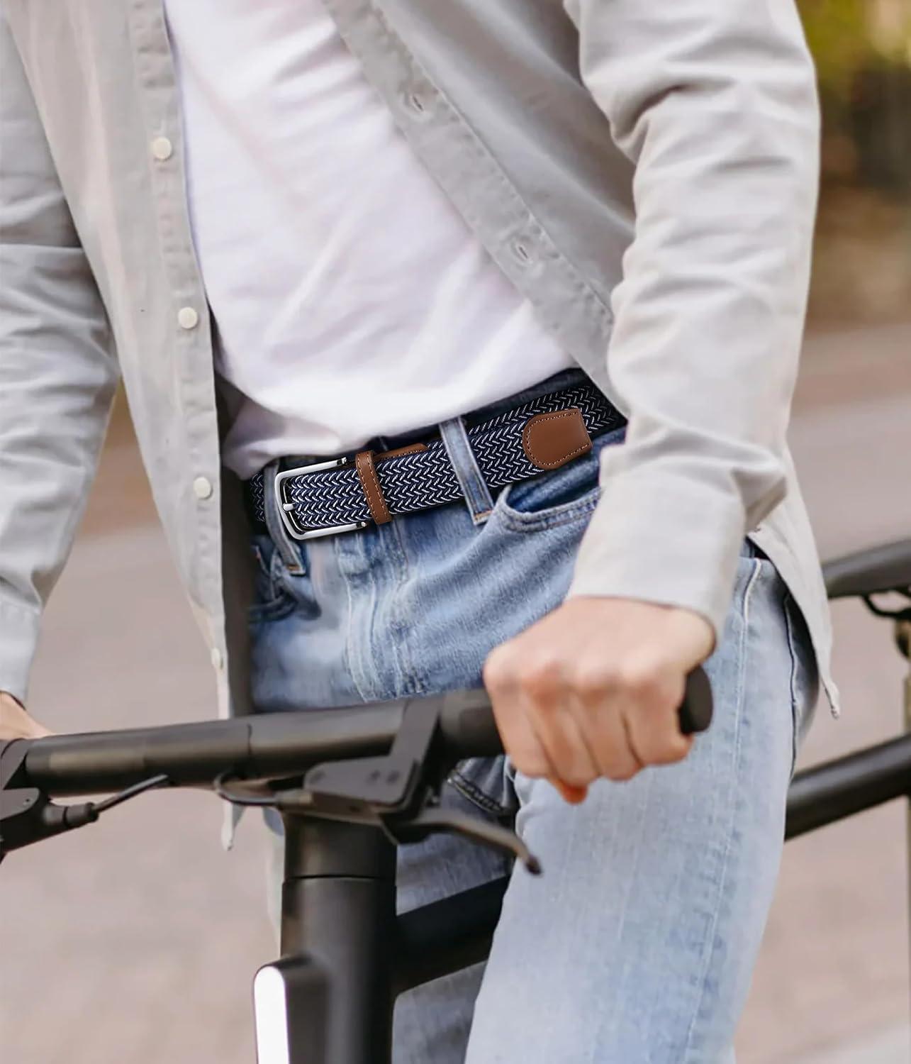 CHAOREN Mens Belt - Braided Stretch Golf Belt for Men 1 3/8"- Gift for Golf Pants Casual Shorts Jeans(Navy White)