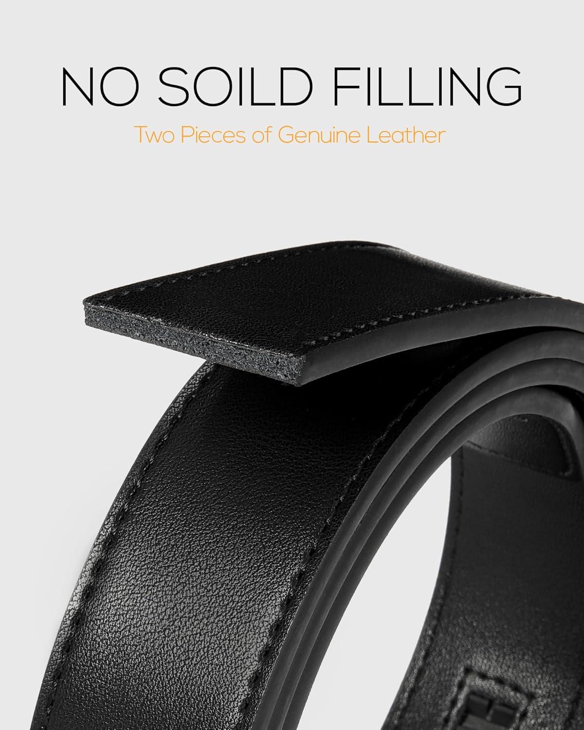 CHAOREN Mens Belt Leather Ratchet Belt - Customizable Fit, Effortless Style (35mm)(Basic Anodized / Black)