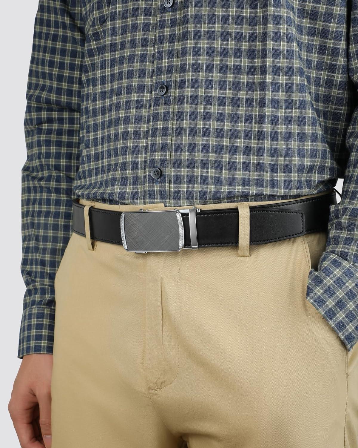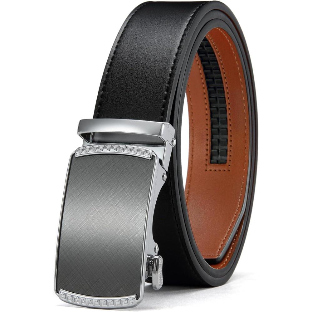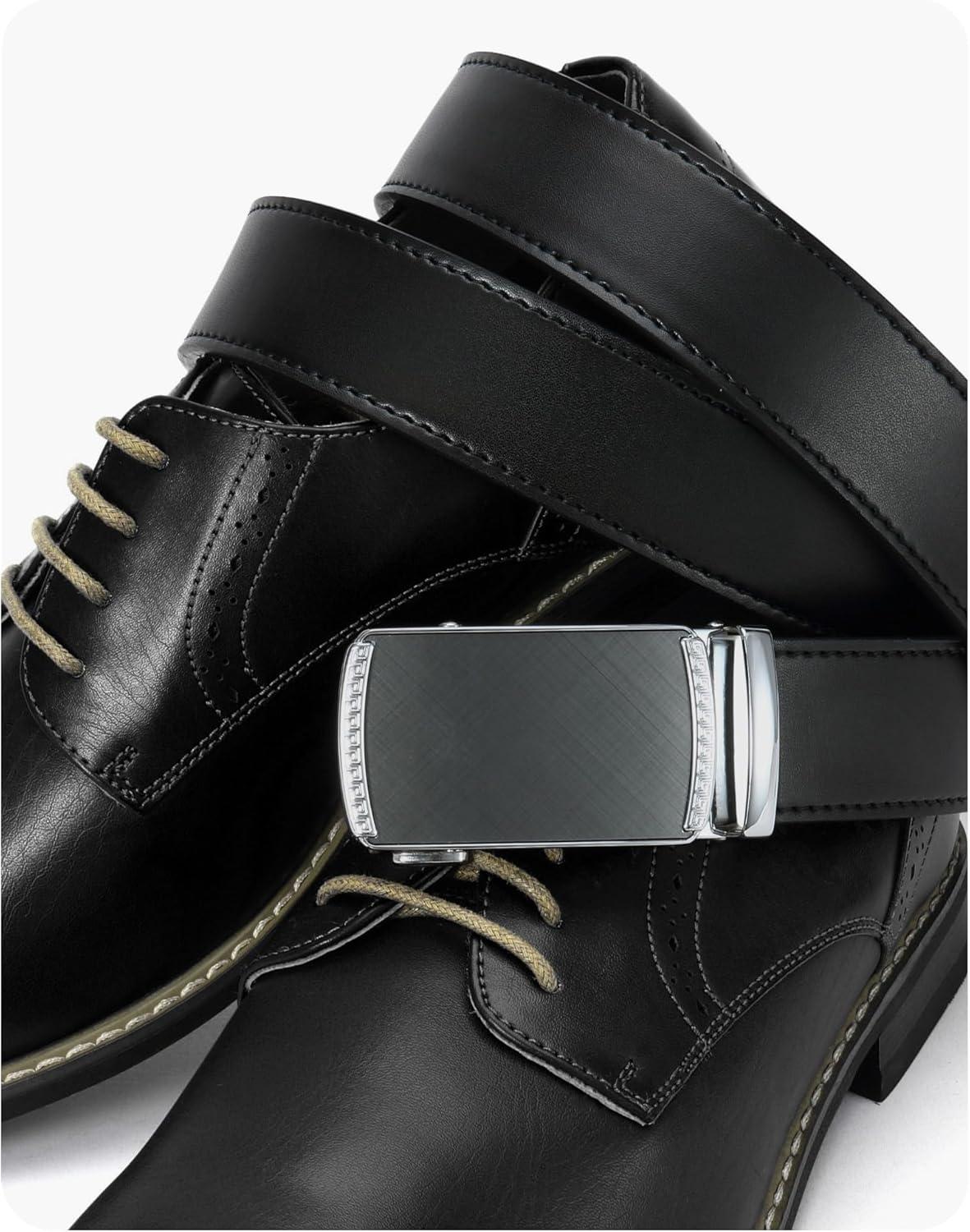 CHAOREN Mens Belt Leather Ratchet Belt - Customizable Fit, Effortless Style (35mm)(Black Silver)