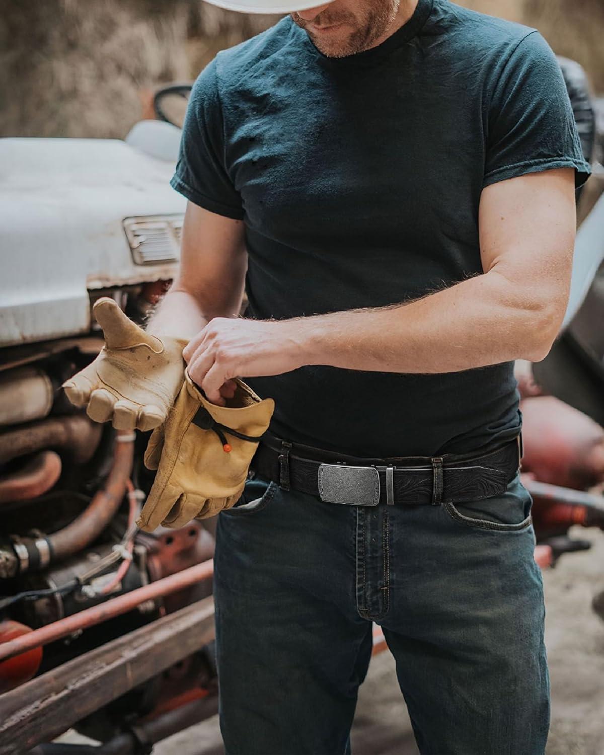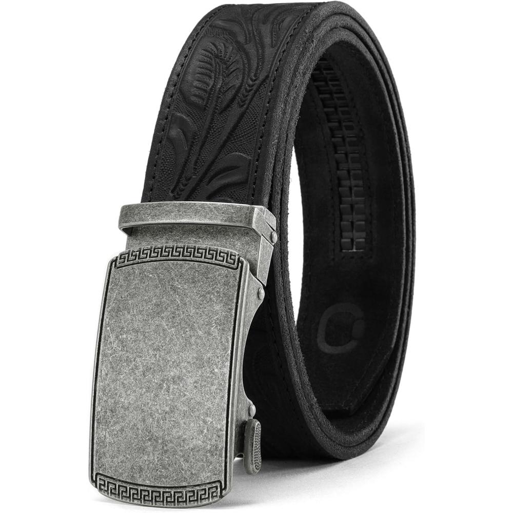 imageCHAOREN Mens Belt Leather Ratchet Belt  Customizable Fit Effortless Style 35mmBronze Silver  Full Grain Flower Black