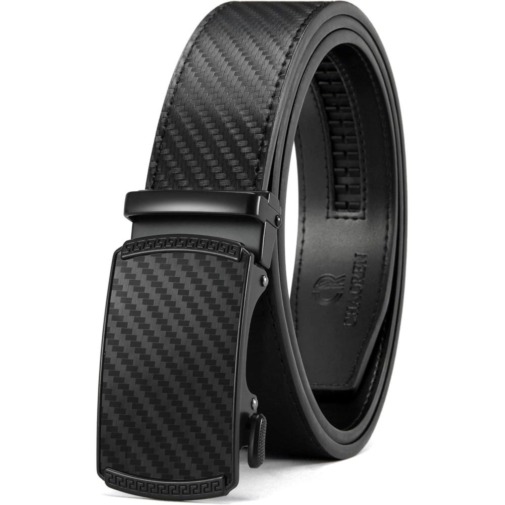 CHAOREN Mens Belt Leather Ratchet Belt - Customizable Fit, Effortless Style (35mm)(Carbon Fiber Basic / Black)