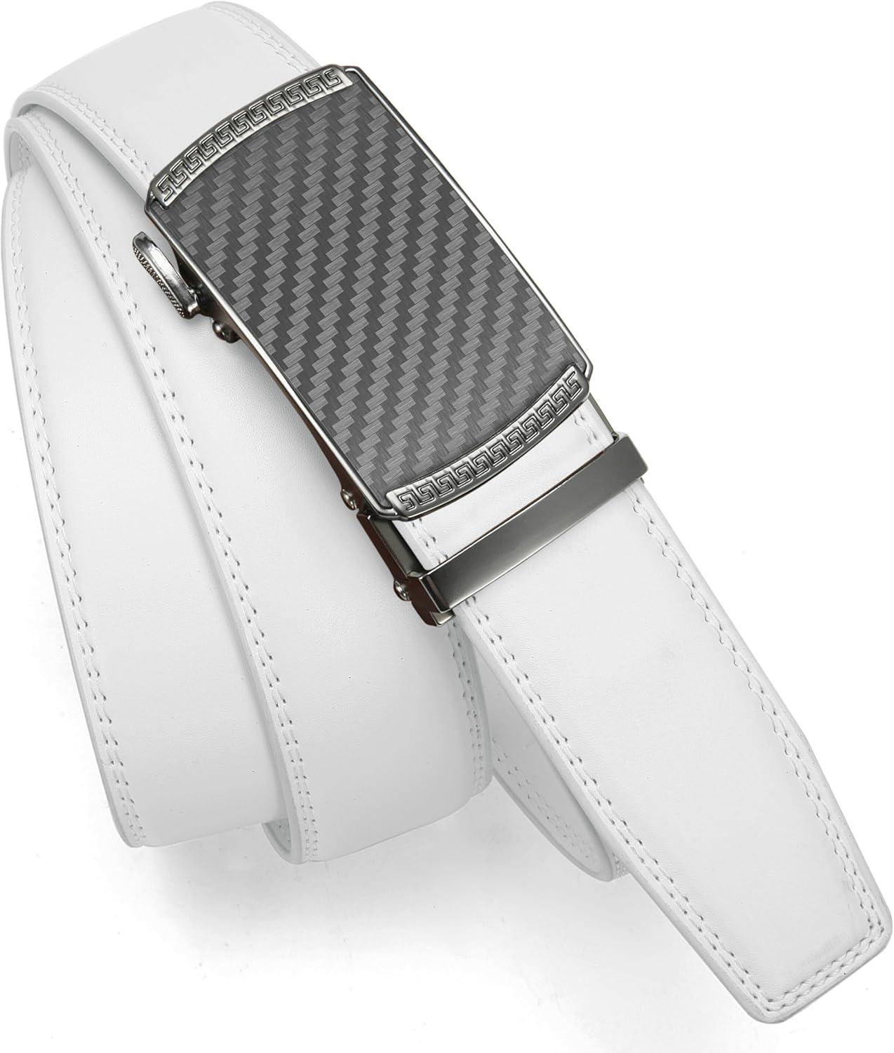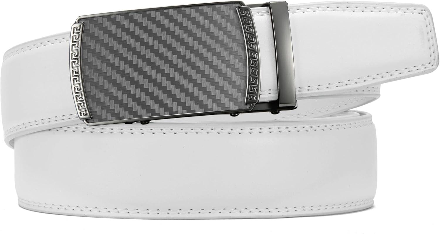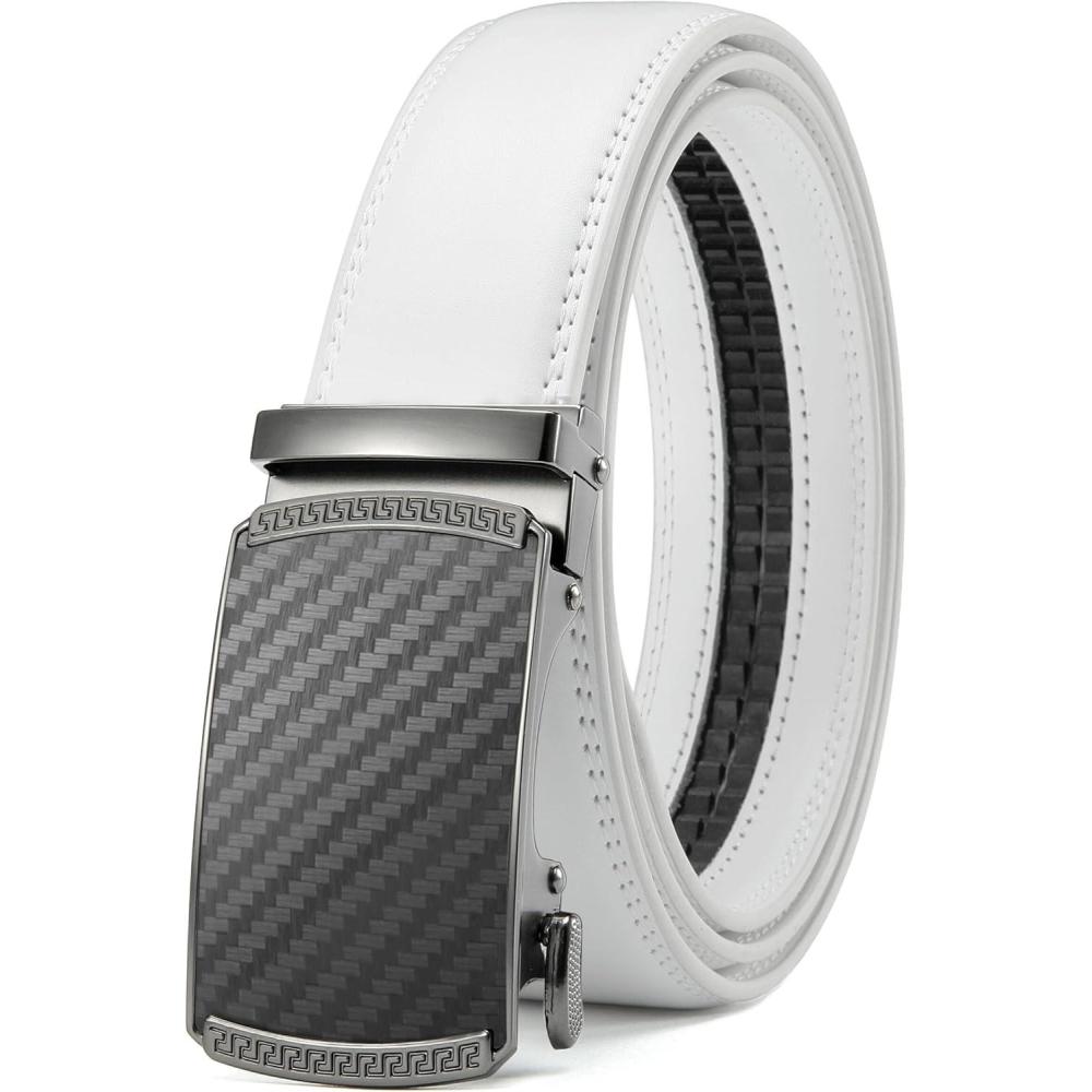 imageCHAOREN Mens Belt Leather Ratchet Belt  Customizable Fit Effortless Style 35mmCarbon Fiber  Golf White