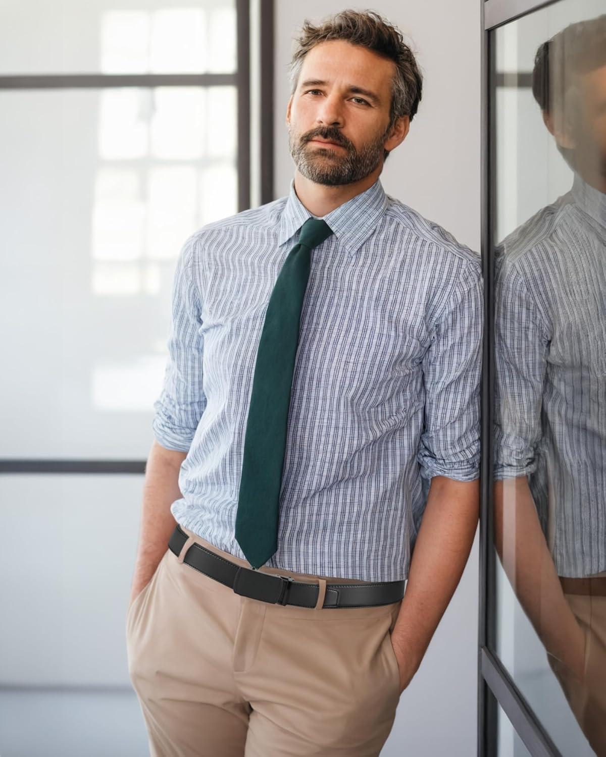 CHAOREN Mens Belt Leather Ratchet Belt – Customizable Fit, Effortless Style (35mm)(Imperial Brushed Anodized / Black)