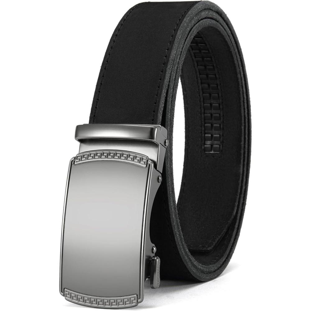 CHAOREN Mens Belt Leather Ratchet Belt – Customizable Fit, Effortless Style (35mm)(Imperial Brushed / Full Grain Black)