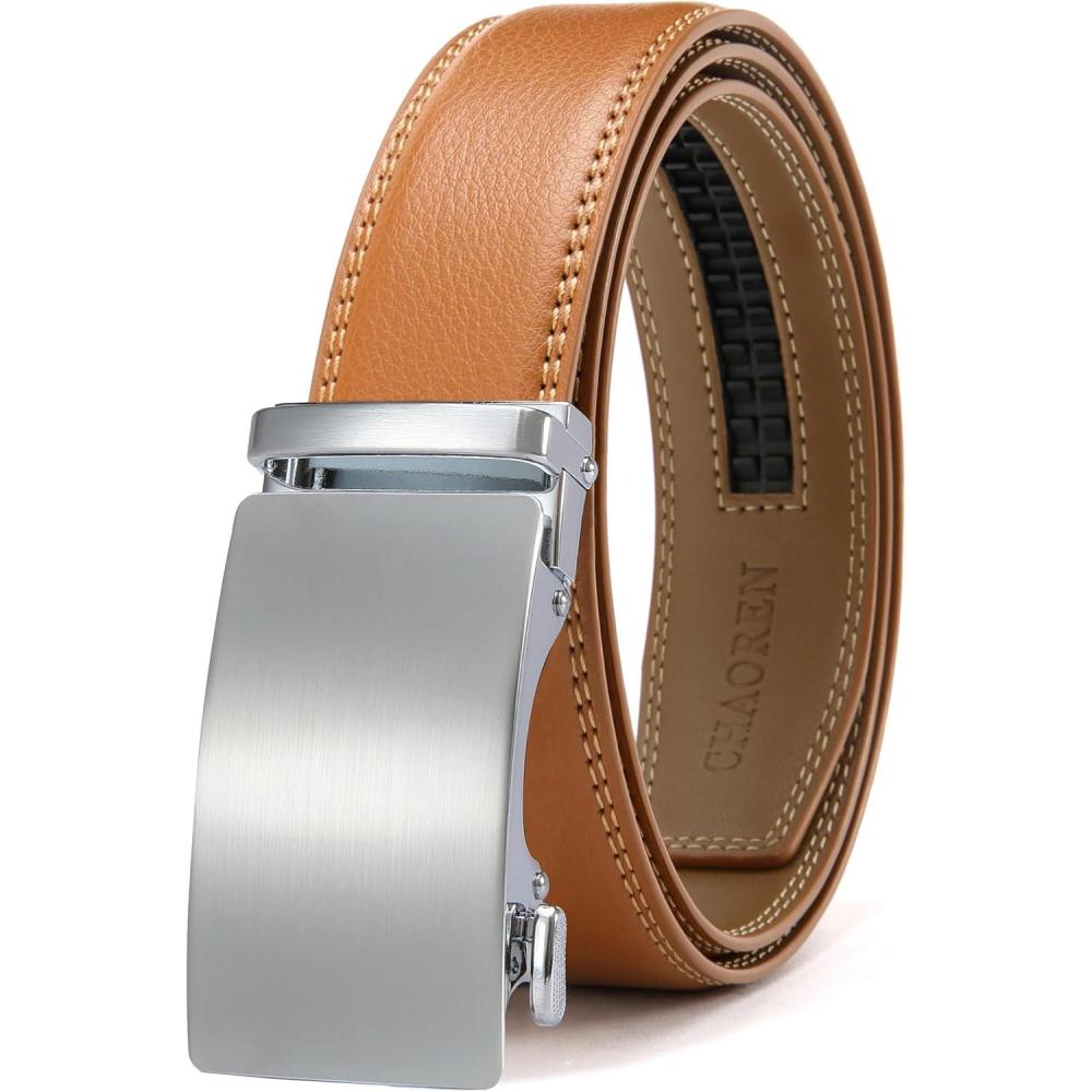 CHAOREN Mens Belt – Mens Ratchet Belt Leather 1 3/8″ for Dress Pant – Micro Adjustable Belt Fit Everywhere(Light Brown)