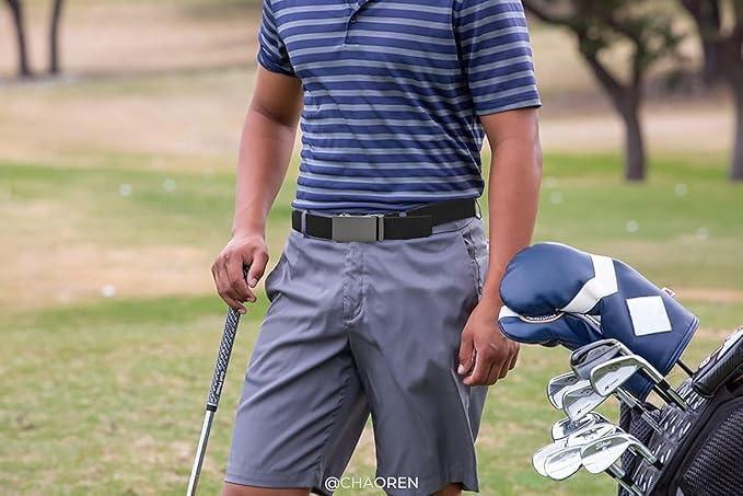 CHAOREN Mens Belt Stretchable - Elastic Golf Nylon Web Adjustable Belt - for Casual Wear(B-matted Gun/Black)