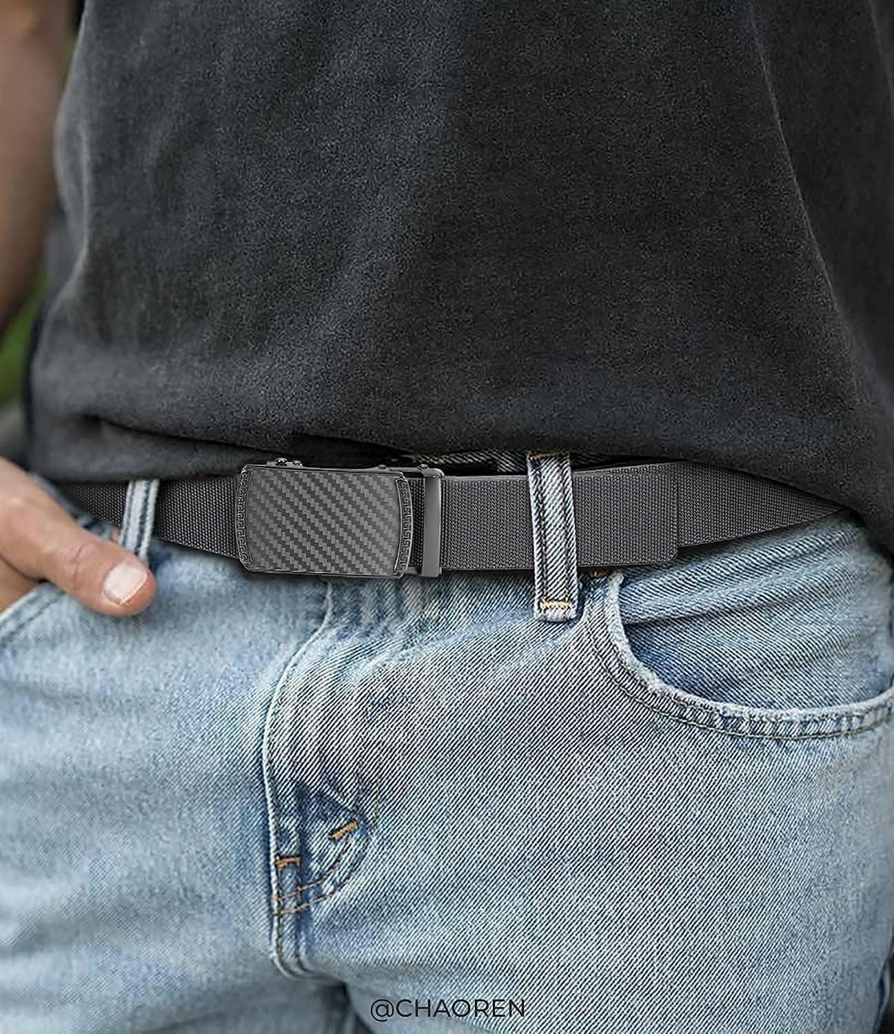 CHAOREN Mens Belt Stretchable – Elastic Golf Nylon Web Adjustable Belt – for Casual Wear(C-carbon Fiber Imperial/Grey)