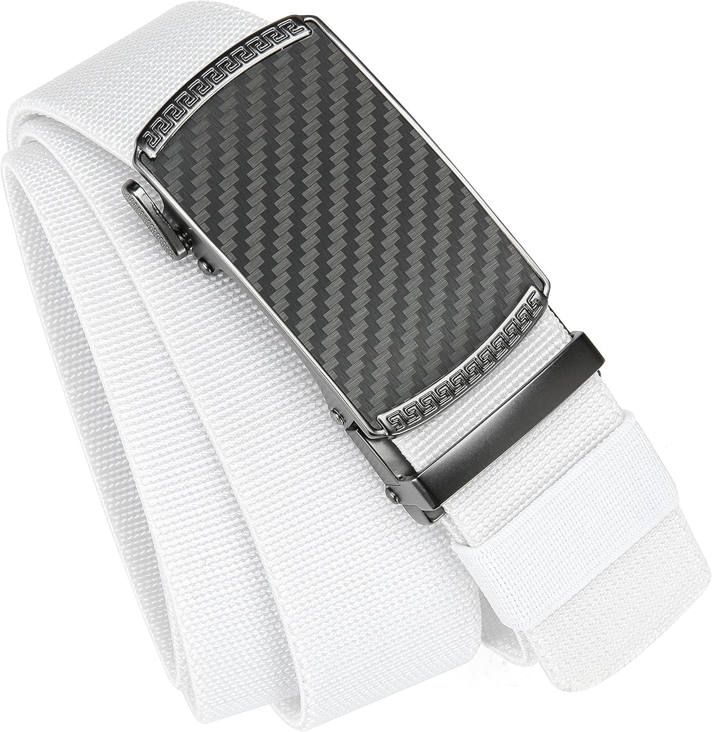 CHAOREN Mens Belt Stretchable - Elastic Golf Nylon Web Adjustable Belt - for Casual Wear(F-carbon Fiber Imperial/White)