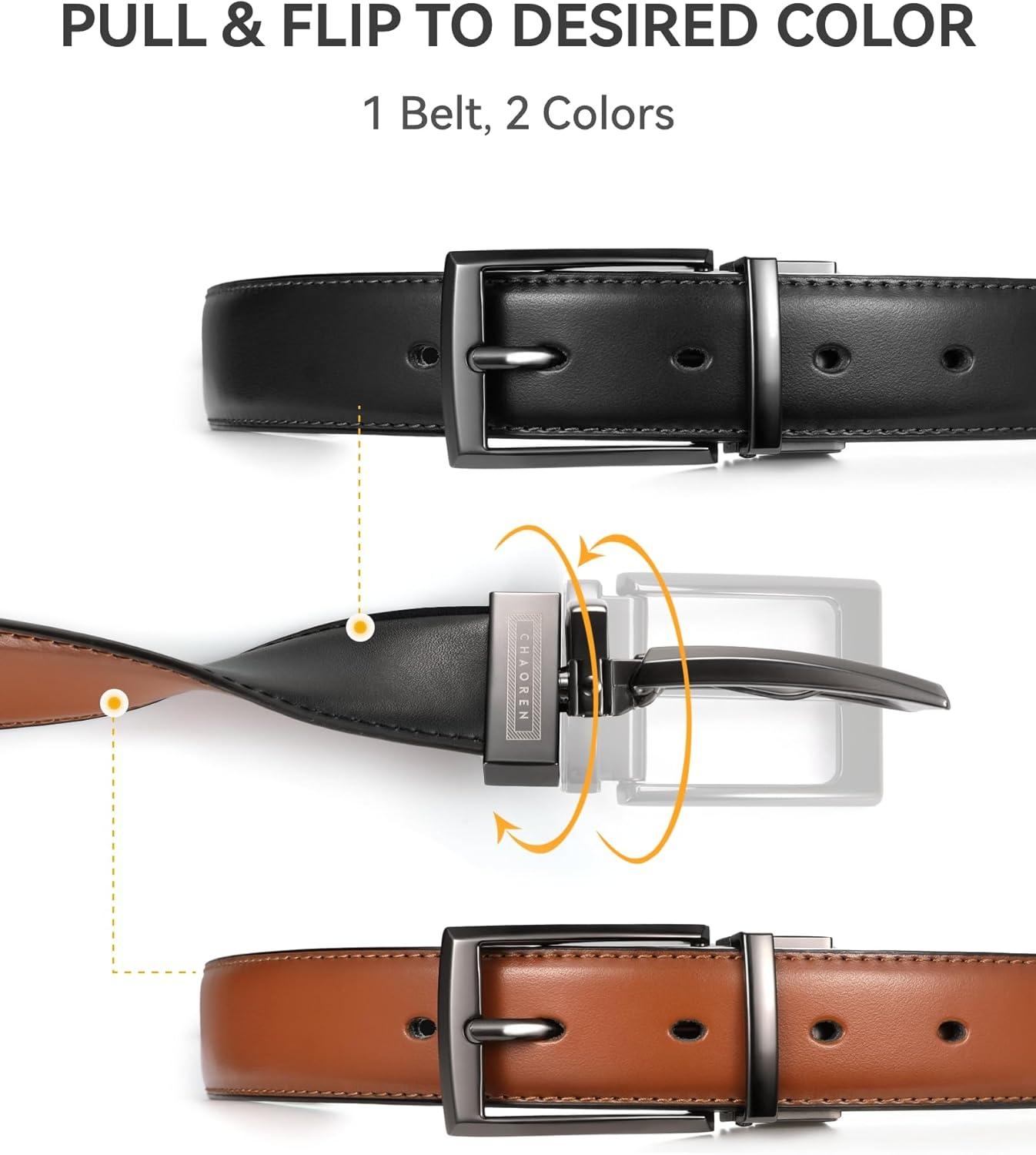 CHAOREN Mens Belts Leather 1 Pack – 1.25″ Reversible Belts for Men for Dress Pants – One Belt, Two Colors(Black/Tan)