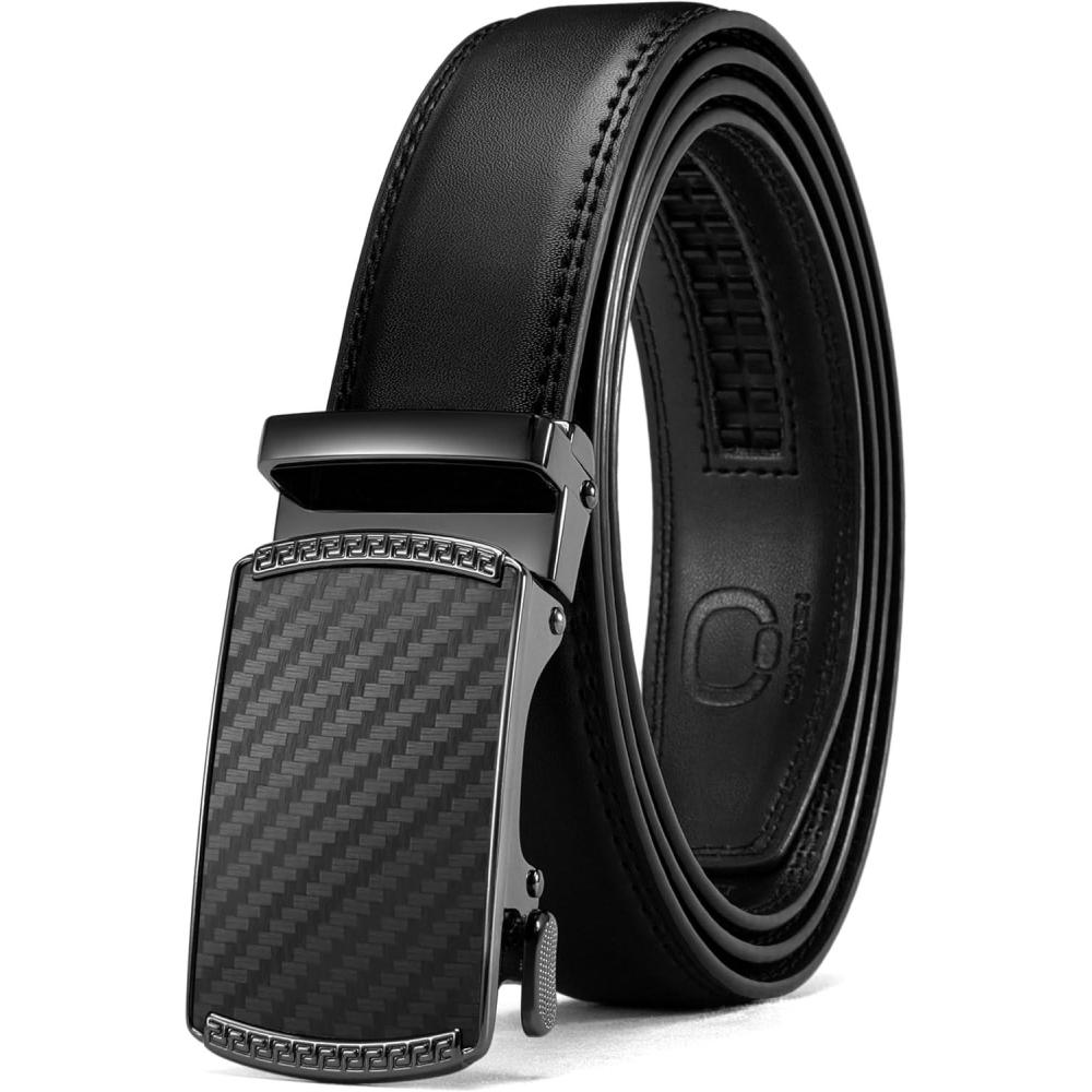 imageCHAOREN Mens Dress Belt  Mens Ratchet Belt Leather 1 14quot for Dress Pant  Micro Adjustable Belts Fit EverywhereCharcoal Depiction  Black
