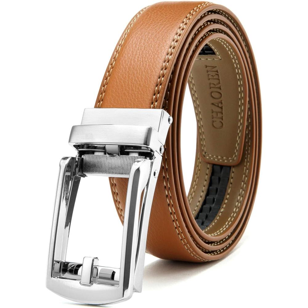 CHAOREN Mens Dress Belt – Ratchet Belt Leather 1 1/4″ Comfort Click – Perfect Companion to Mens Dress Shoes(Light Brown)