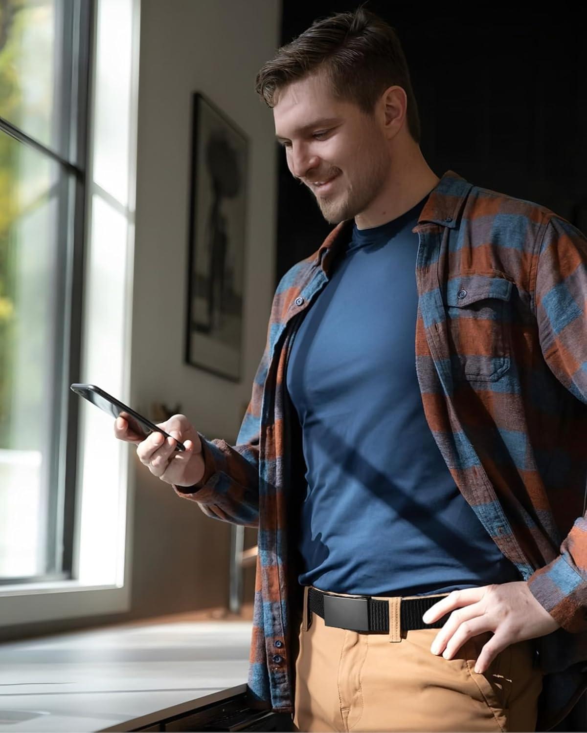 CHAOREN Nylon Ratchet Belts for Men – Adjustable Web Belt – Automatic Slide Buckle for Casual Golf Work(Bright Black 35mm)