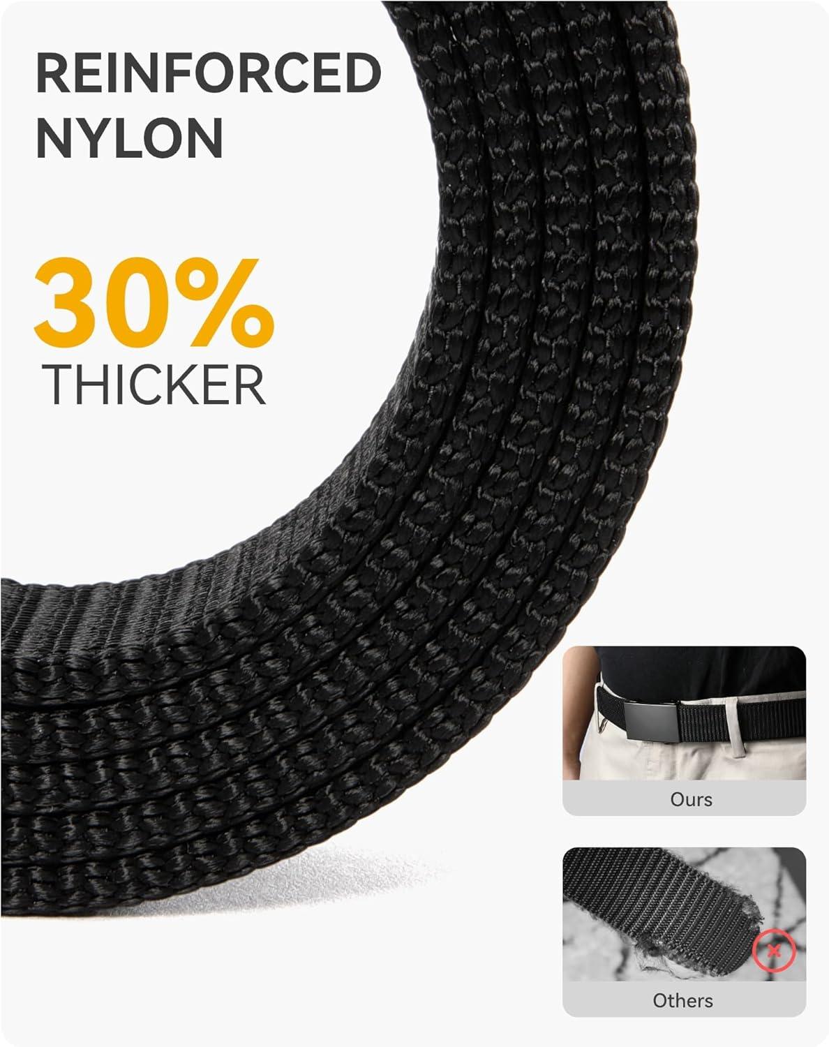 CHAOREN Nylon Ratchet Belts for Men - Adjustable Web Belt - Automatic Slide Buckle for Casual Golf Work(Bright Black 35mm)