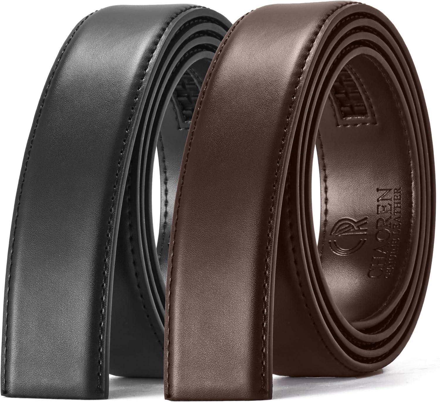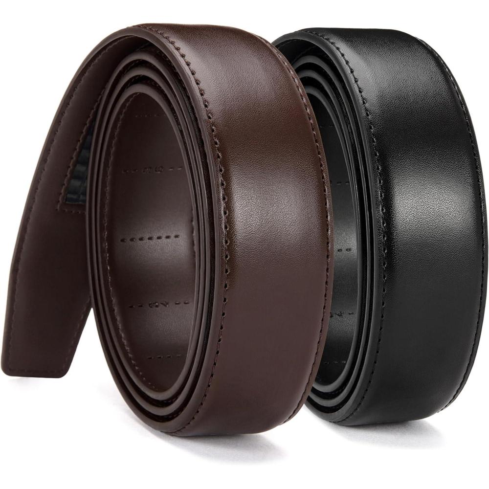 CHAOREN Ratchet Belt Replacement Strap 1 3/8”, Leather Belt Strap for 40MM Slide Click Buckle(Black & Dark Brown)