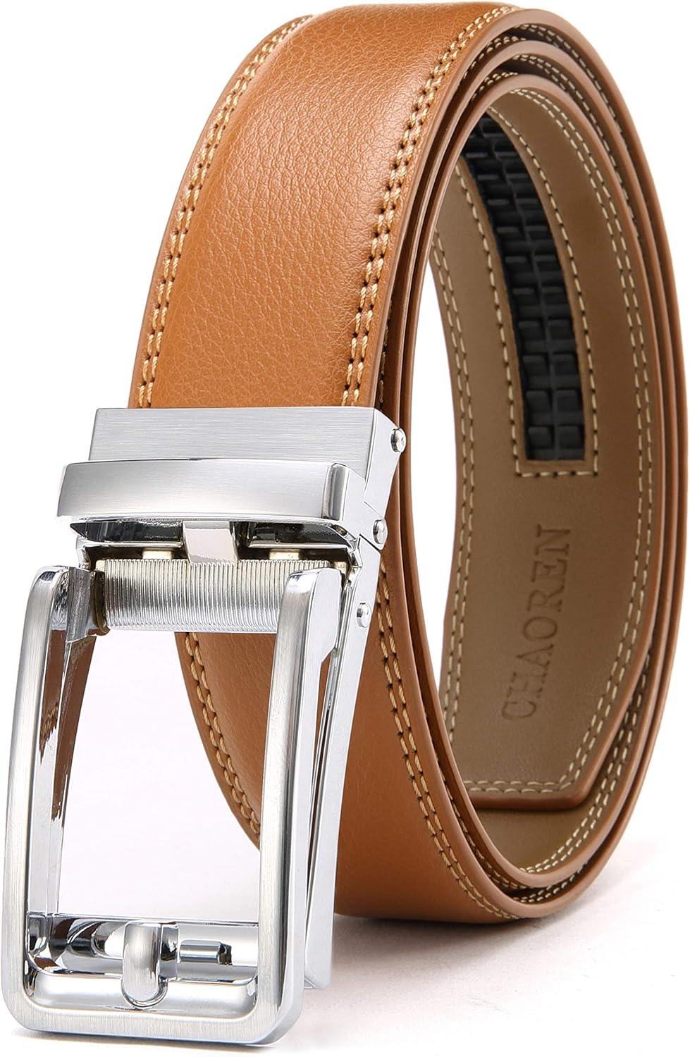 imageCHAOREN Ratchet Belt Replacement Strap 1 38 Leather Belt Strap for 40MM Slide Click BuckleBrown Light