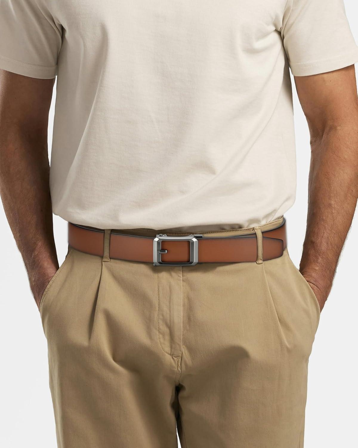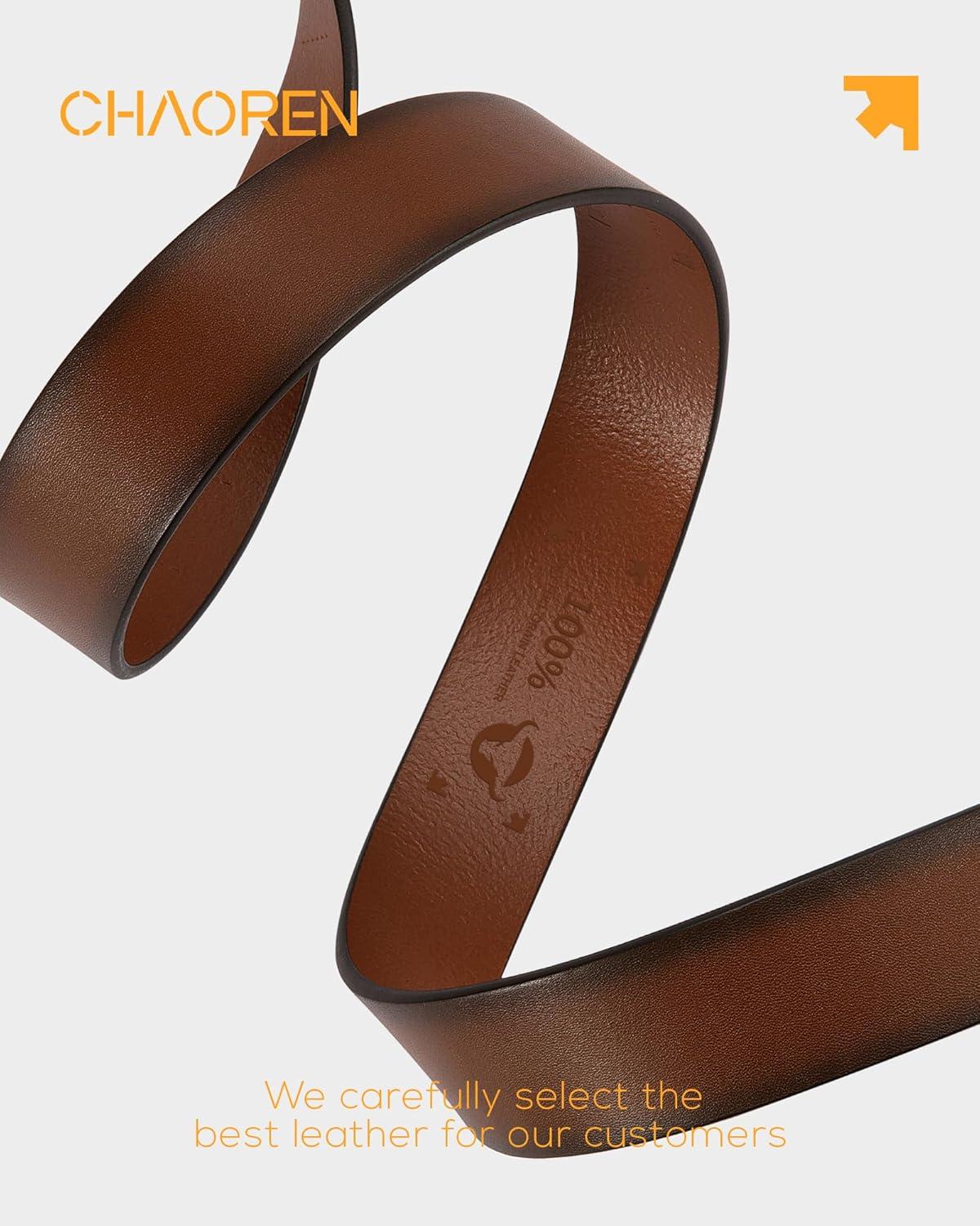 imageCHAOREN Ratchet Belts for Men  15quot Mens Belts Genuine Leather for Causual Jeans  Versatile Fit Customizable StyleBrown