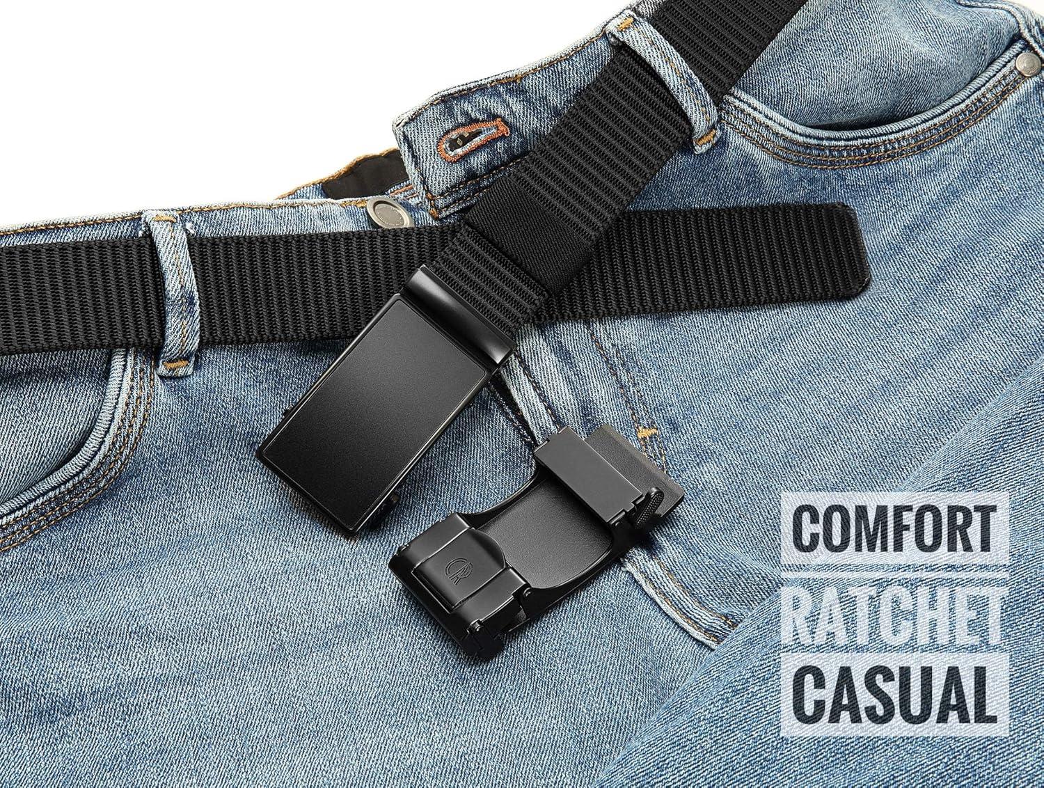 CHAOREN Ratchet Belts for Men 2 Pack – Casual Web Nylon Mens Belt 1 3/8″ – Automatic Adjustable Buckle Fit Jeans(2 Pack Black and Navy)
