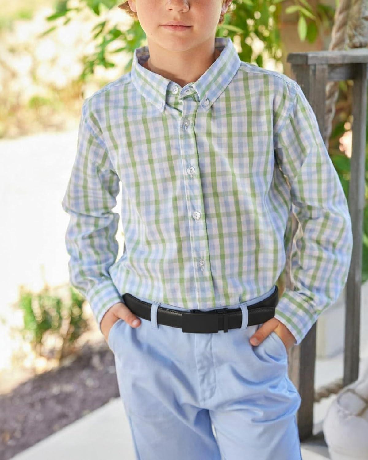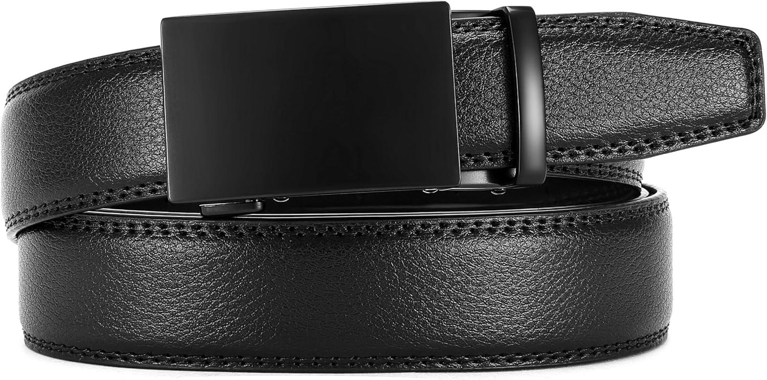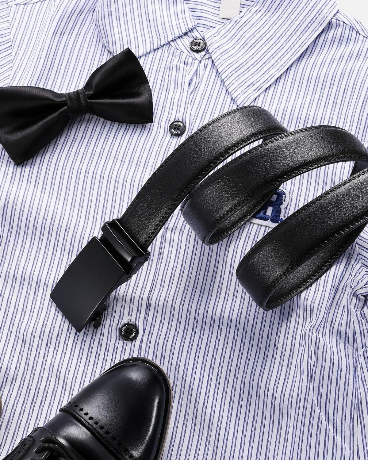 CHAOREN Ratchet Boys Belt, Kid Dress Belt with Click Buckle, Adjustable Leather Belt for School Uniform and Formal Pants(Black)