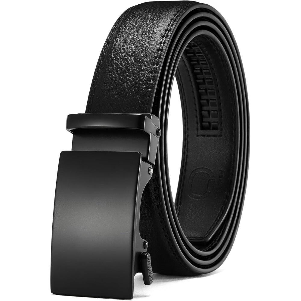 imageCHAOREN Ratchet Boys Belt Kid Dress Belt with Click Buckle Adjustable Leather Belt for School Uniform and Formal PantsBlack