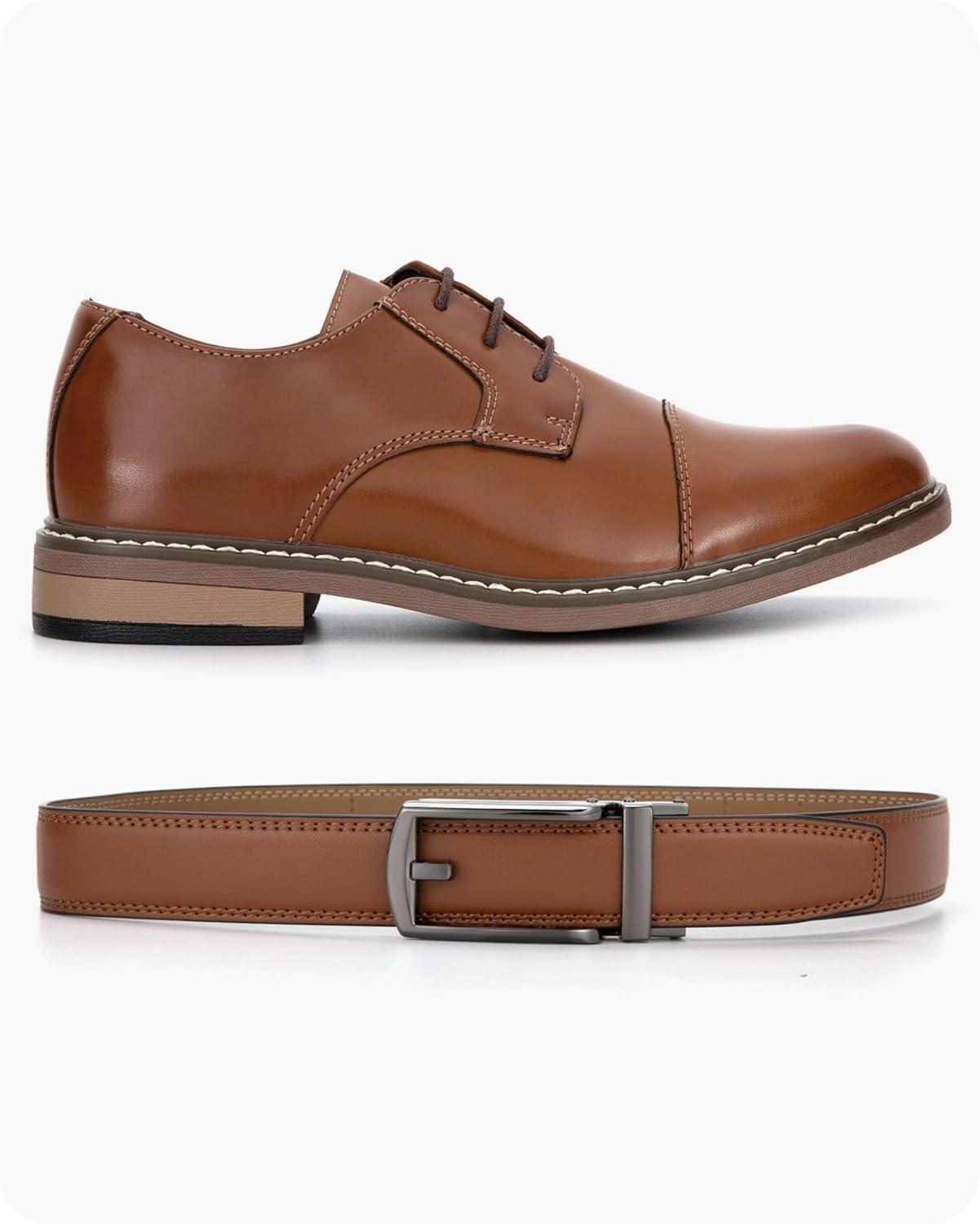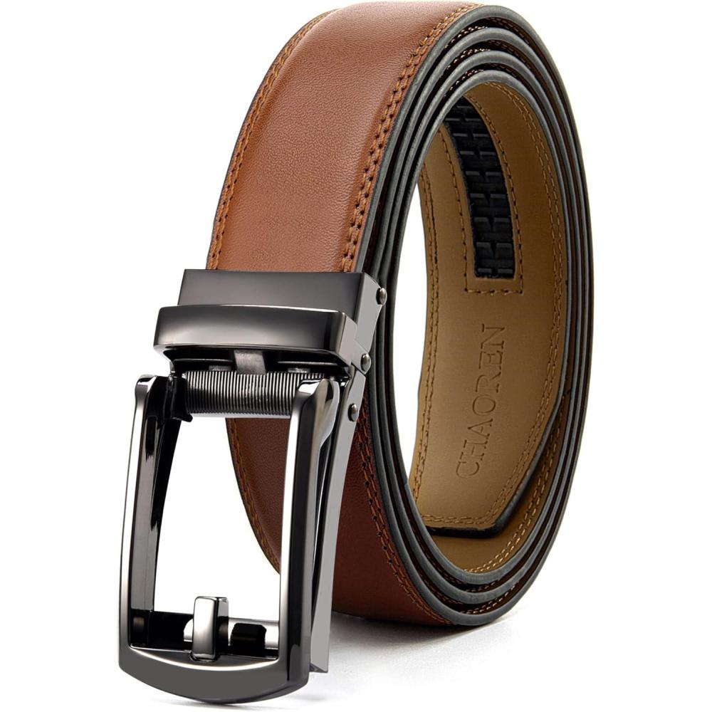 CHAOREN Ratchet Boys Belt, Kids Dress Leather Belt with Click Closure, Adjustable for Casual and Formal Wear(Brown)